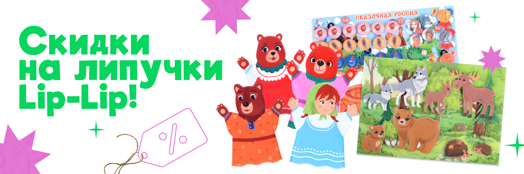 Полюбившиеся детям и родителям Весёлые липучки бренда «LipLip» яркие и красочные, сделанные из плотного материала и вручную раскрашенные художниками. Каждая игра оснащена липучками, позволяющими легко крепить её на игровой поверхности. Разнообразие тематических игровых наборов даёт возможность выбрать игру в соответствии с предпочтениями, возрастом и способностями ребёнка от 2 до 7 лет.
