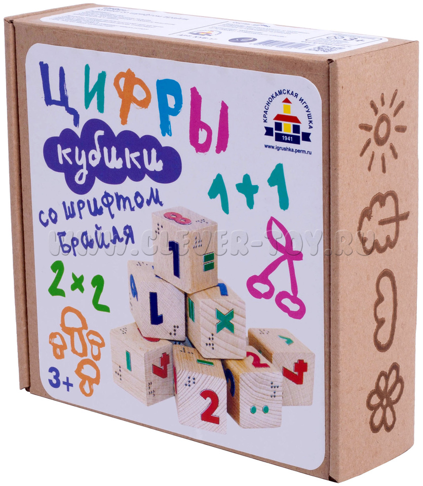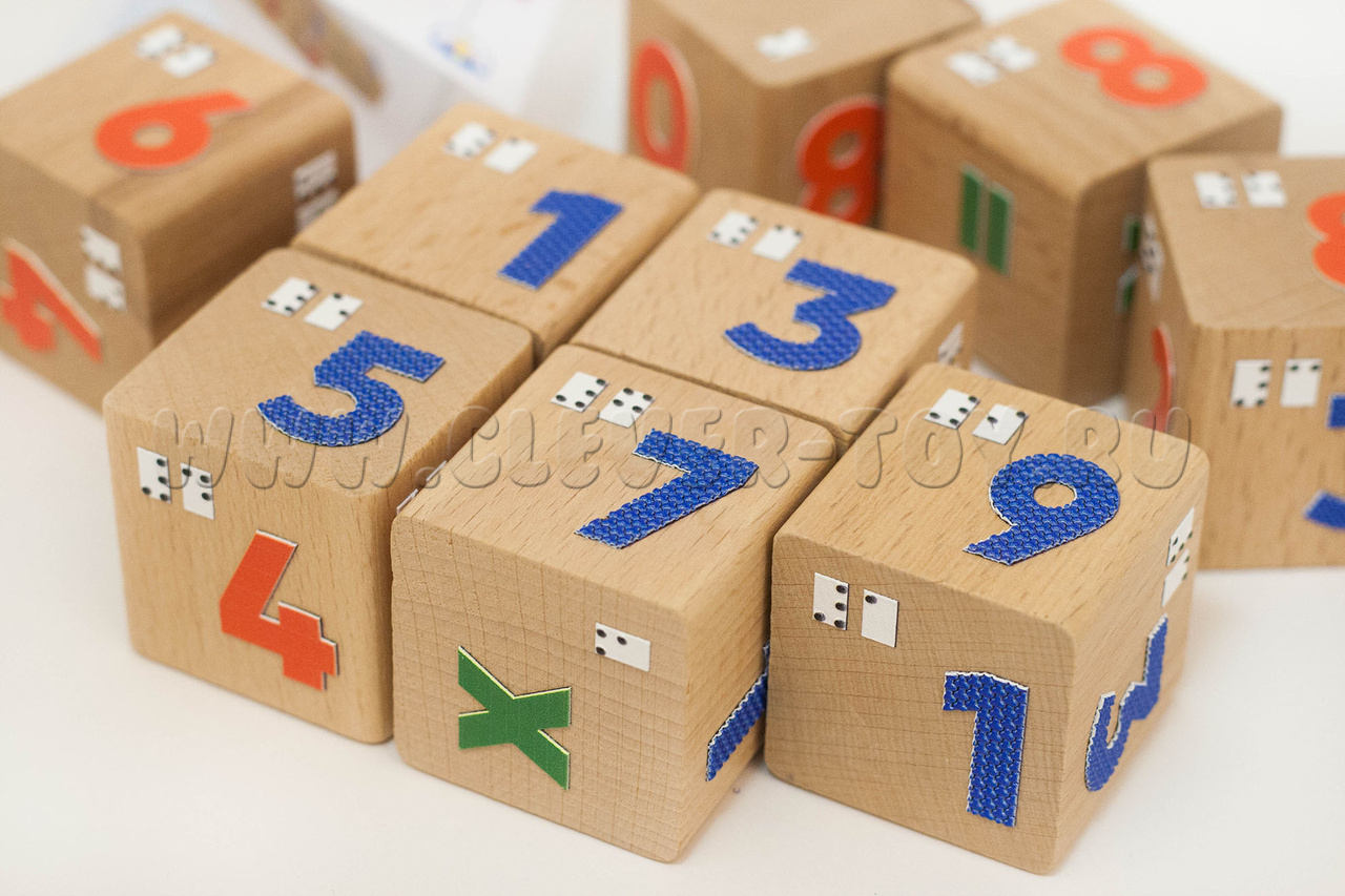 Кубики деревянные со шрифтом Брайля "Цифры" (остатки)