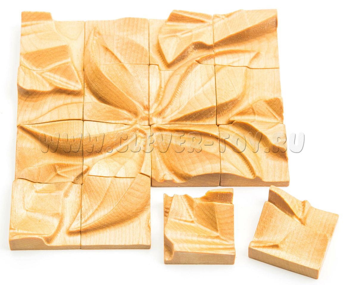 Пазл состоит из 16 деревянных элементов.