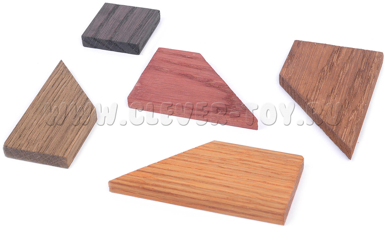 • 4 прямоугольных трапеции из древесины разного цвета,