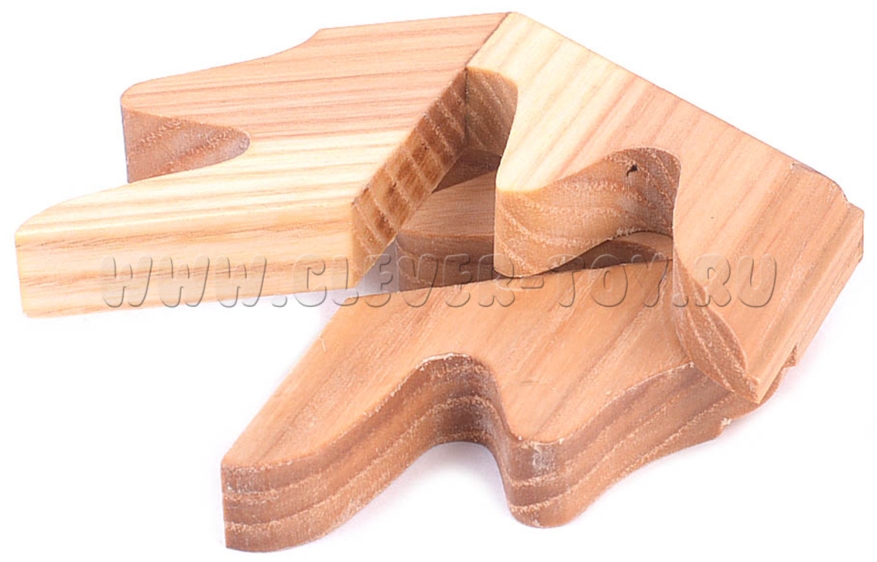 Если положить эту шестигранную призму плашмя на поверхность стола, и легонько крутануть её как волчок, то благодаря центробежным силам головоломка разделится на три одинаковые части. Попробуйте собрать из них исходное тело - это будет не так уж и просто, ведь создавать сложнее, чем разрушать.
