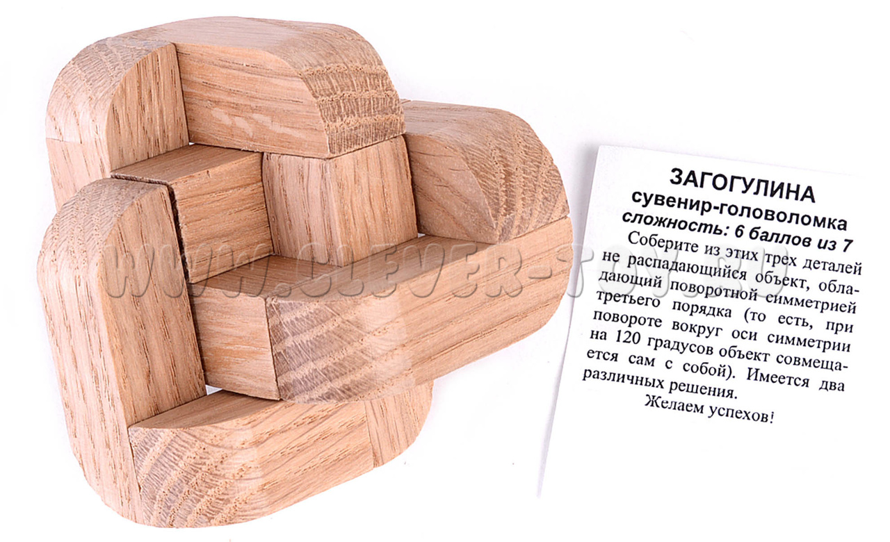 Головоломка "Загогулина" - это деревянная игрушка, которая состоит из трех деталей, смонтированных друг на друга, создавая сложную и интересную конструкцию. Для ее разборки и сборки требуется применить логическое мышление и способность анализировать пространственные формы.