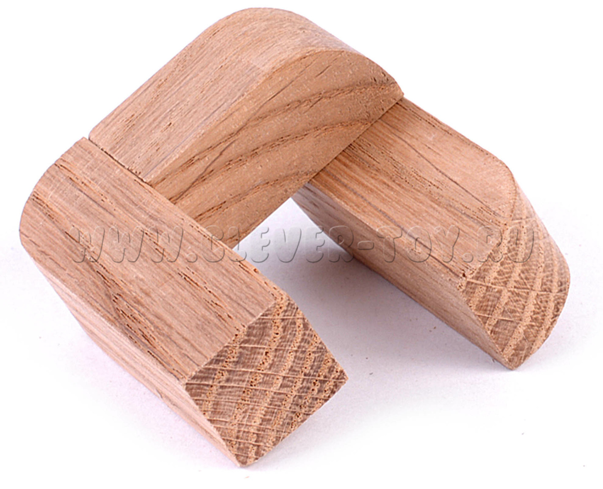 Каждая деталь имеет сцепки с двумя другими деталями. Кажется, что невозможно снять хотя бы одну из деталей, так как все они между собой соединены и взаимозависимы. Однако у этой головоломки есть тайный трюк.