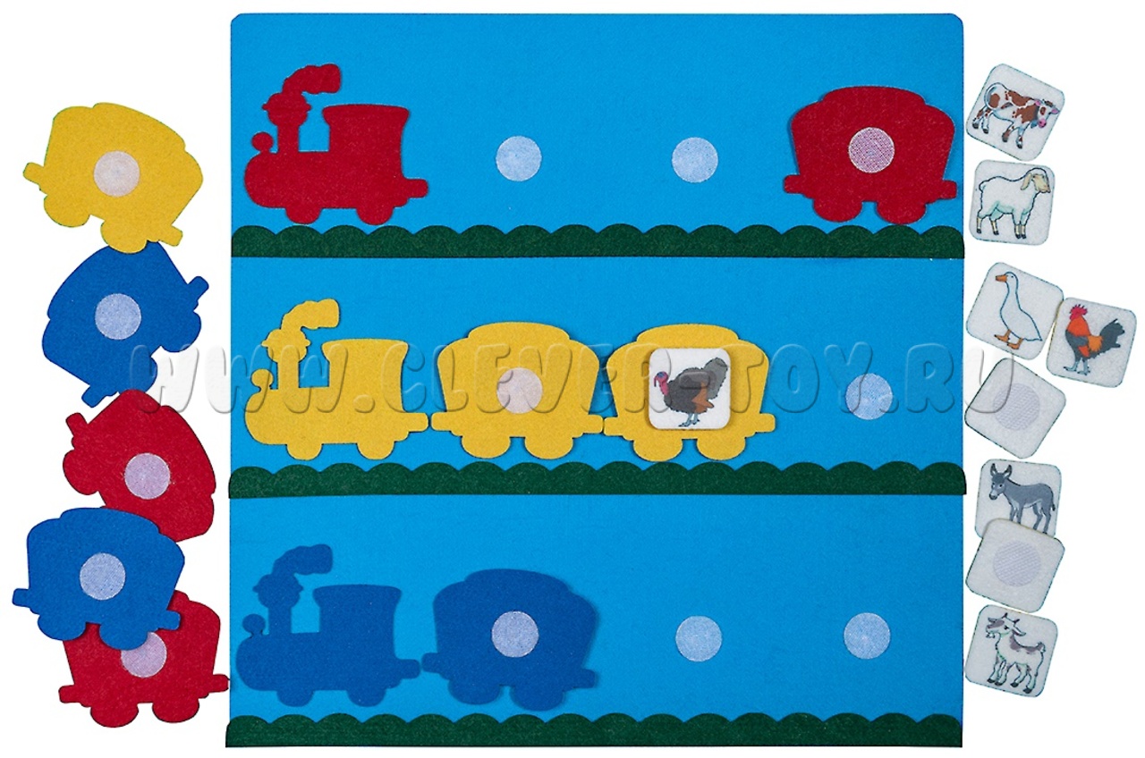 2. Изучайте основные цвета. Расставляйте вагоны к паровозам соответствующего цвета.