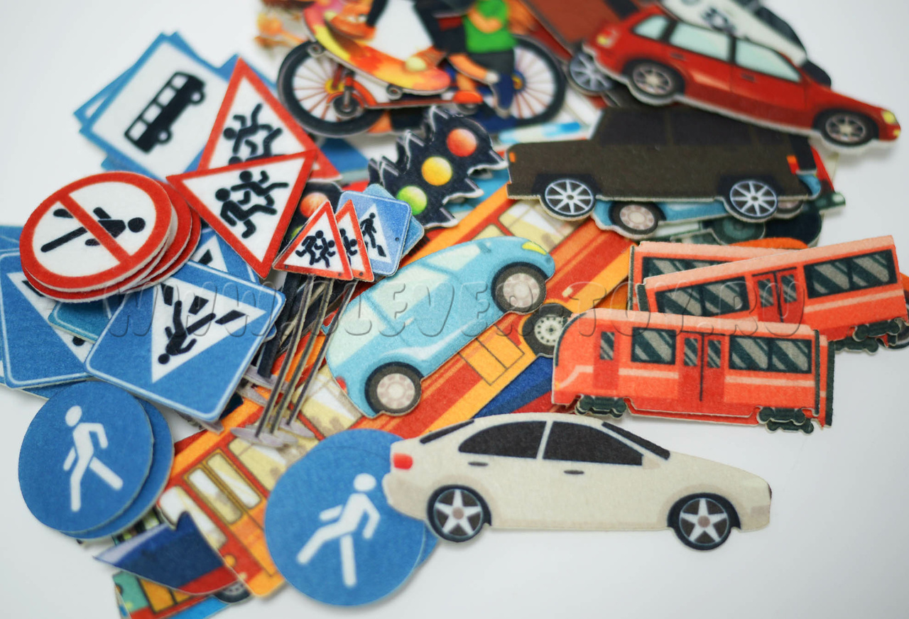 Используя маленькие фигурки машинок и транспорта, светофоров, дорожных знаков, детишек, родители и дети могут придумать множество умных и интересных игр.