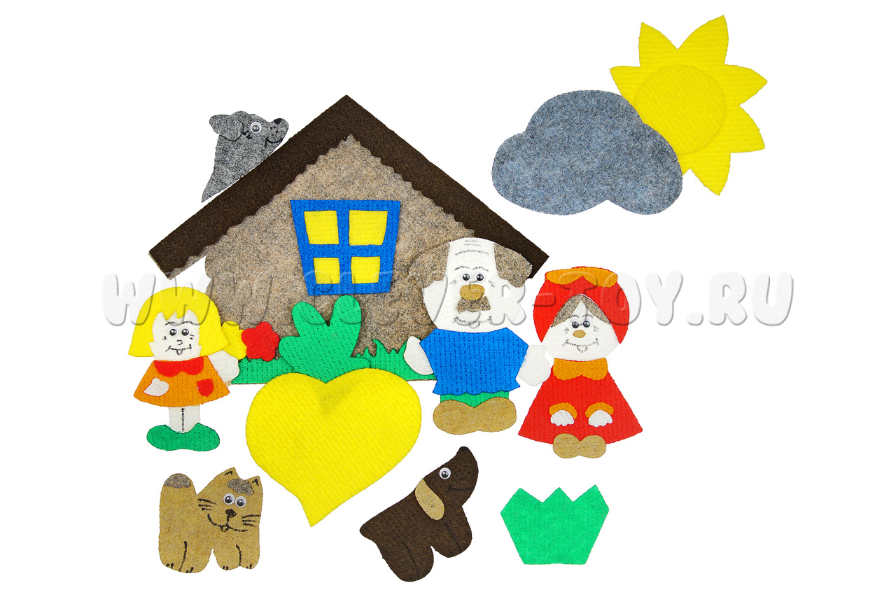 Игра представляет собой ковролиновый кукольный театр на плоскости. В таком, первом для вашего ребёнка, театре, можно не только познакомиться с героями любимой сказки «Репка», вспомнить сюжет сказки, но и самому стать маленьким актёром или даже режиссёром новой волшебной истории.