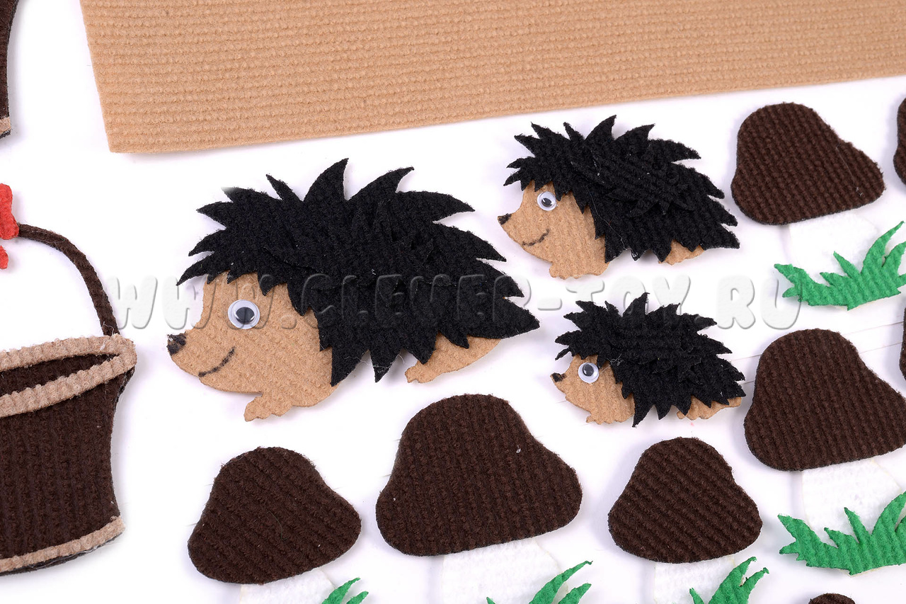 - дерево, солнышко, тучка с молнией, корзинка, ёжик маленького, среднего и большого размера (по три шт. каждого вида);