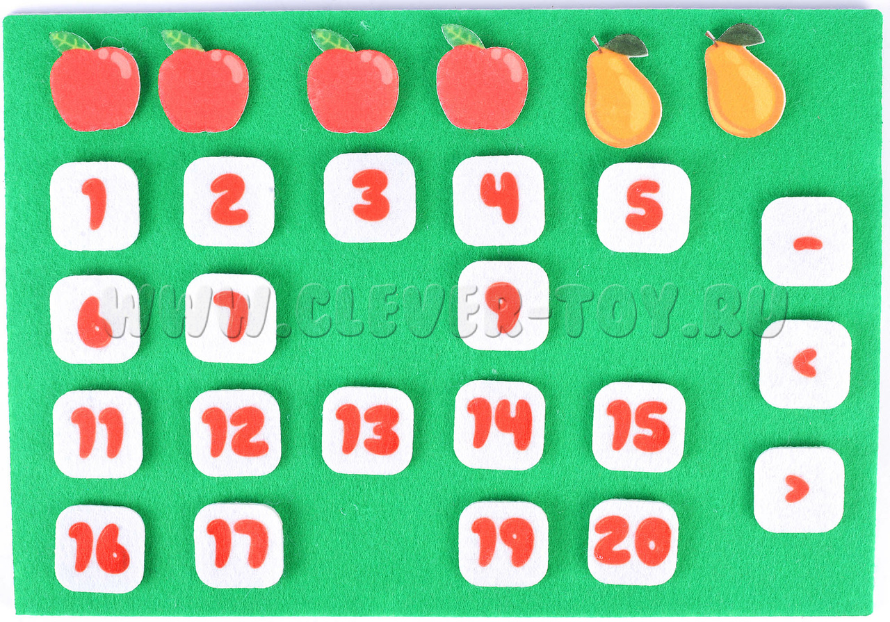 Данный набор поможет ребенку научиться выполнять простейшие арифметические действия. Складывать вычитать, сравнивать, считать до 20.