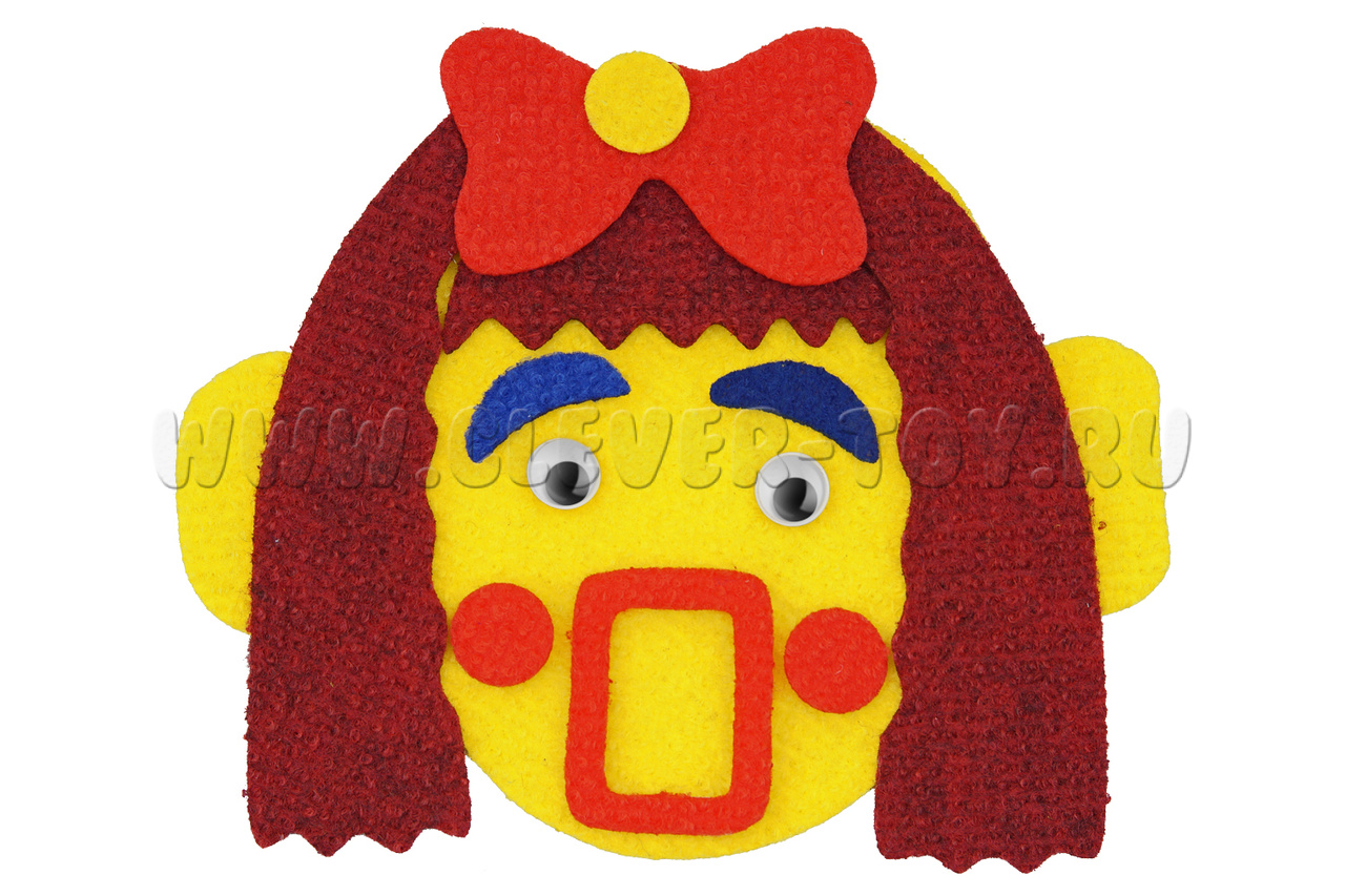 • игровые элементы разных размеров, цветов и форм на многоразовых липучках: овалы лица, уши, губы, волосы, брови, носики, усы, хвостики с бантиками;
