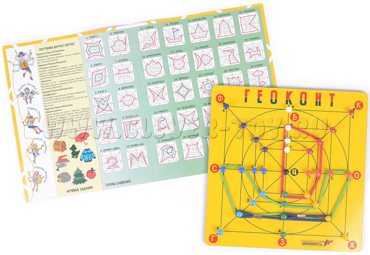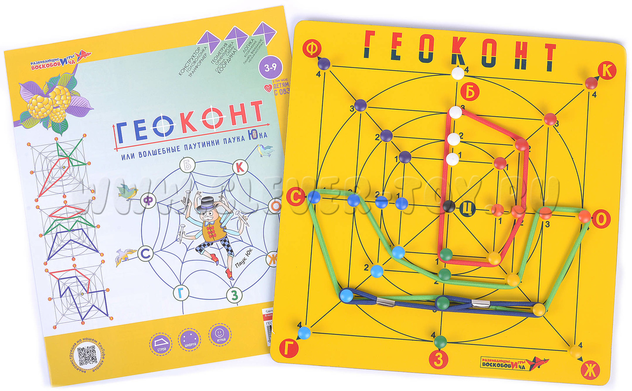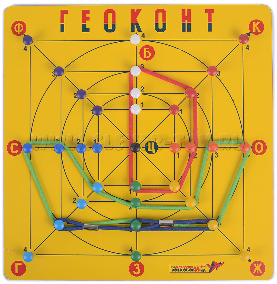 Авторское игровое пособие от фирмы «Развивающие игры Воскобовича» - одно из самых популярных среди детей, родителей и педагогов. С помощью игры «Геоконт» происходит развитие умений наблюдать и сравнивать, сопоставлять и анализировать, делать простейшие обобщения и интерпретировать их.