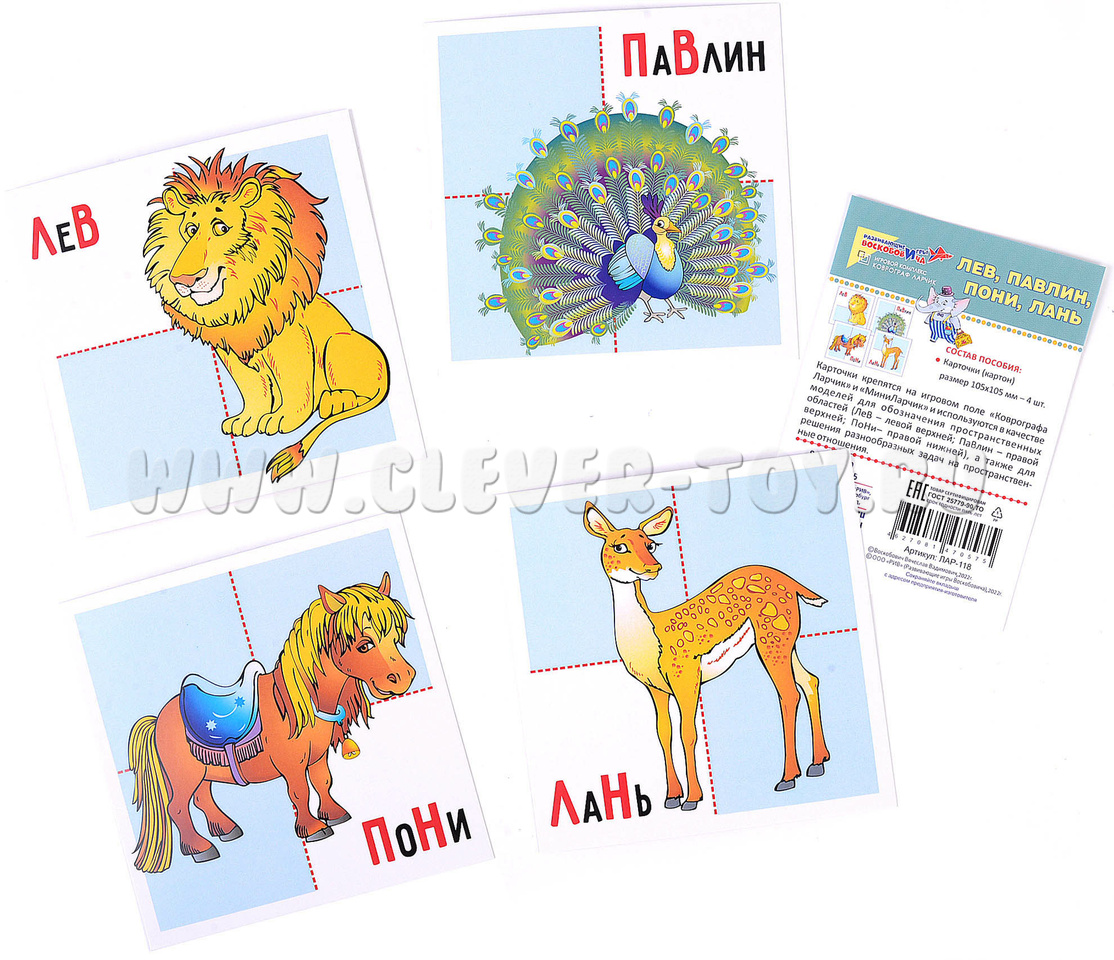 - Пространственные карточки "Лев-Павлин-Пони-Лань" (ЛАР-118) - 1шт,