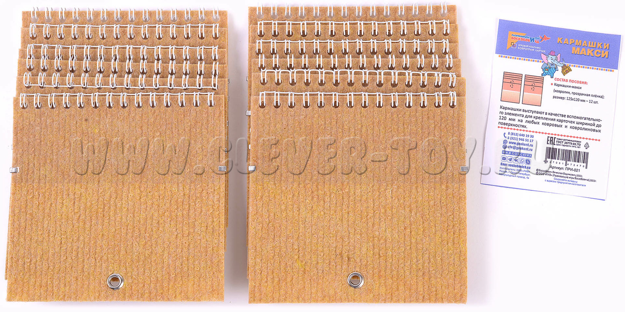 Кармашки предназначены для размещения и демонстрации карточек. Удобная конструкция позволяет быстро менять карточку и размещать её на любой ковролиновой поверхности.