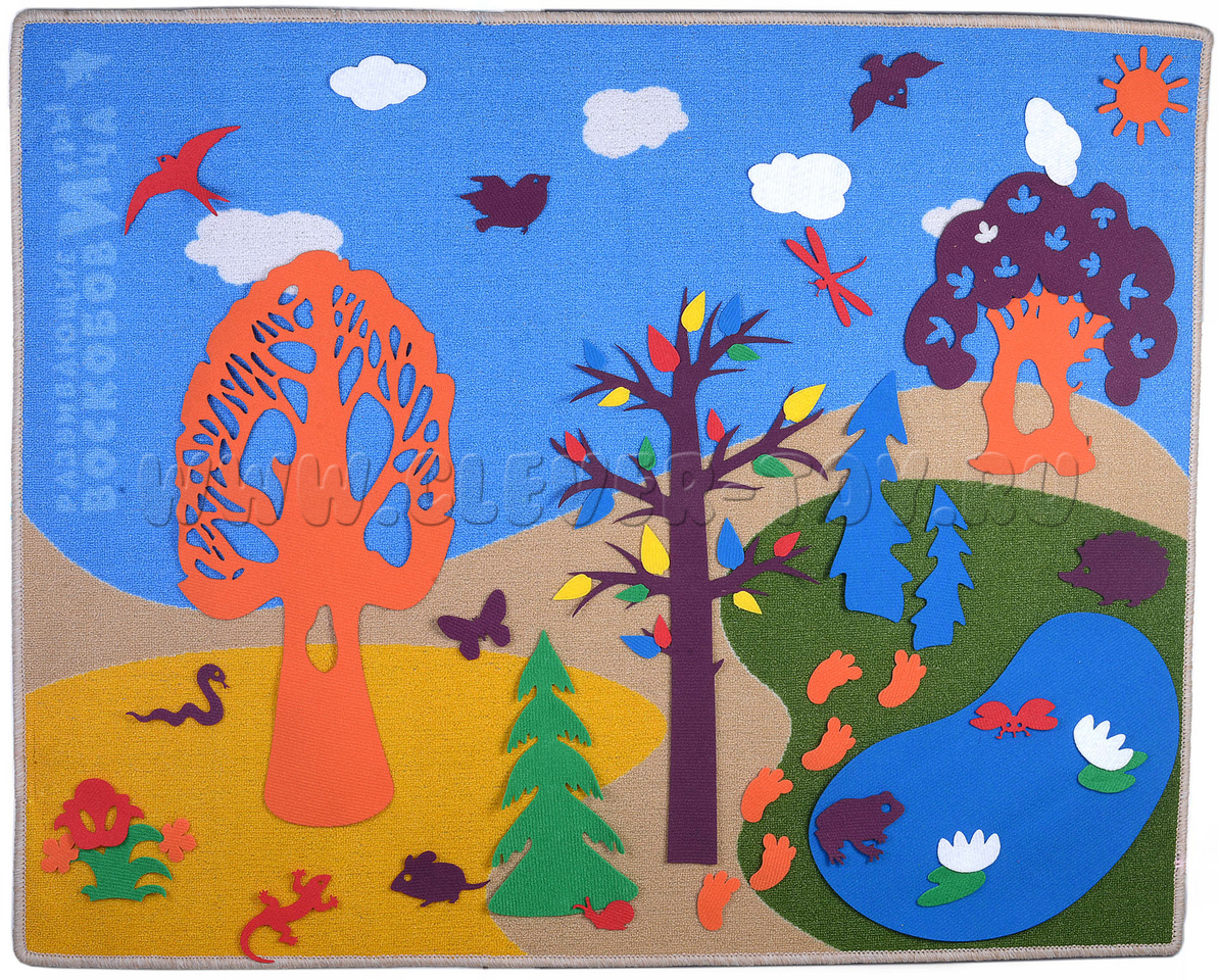 - Съёмные элементы «на липучках» - 140 шт. размером от 2 до 60 см! (животные, насекомые, деревья, листья, цветы и др.)