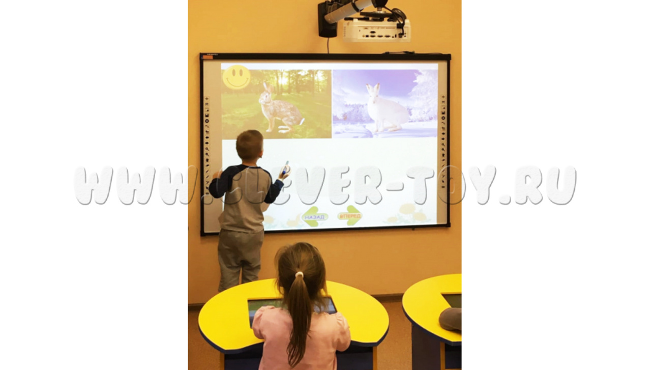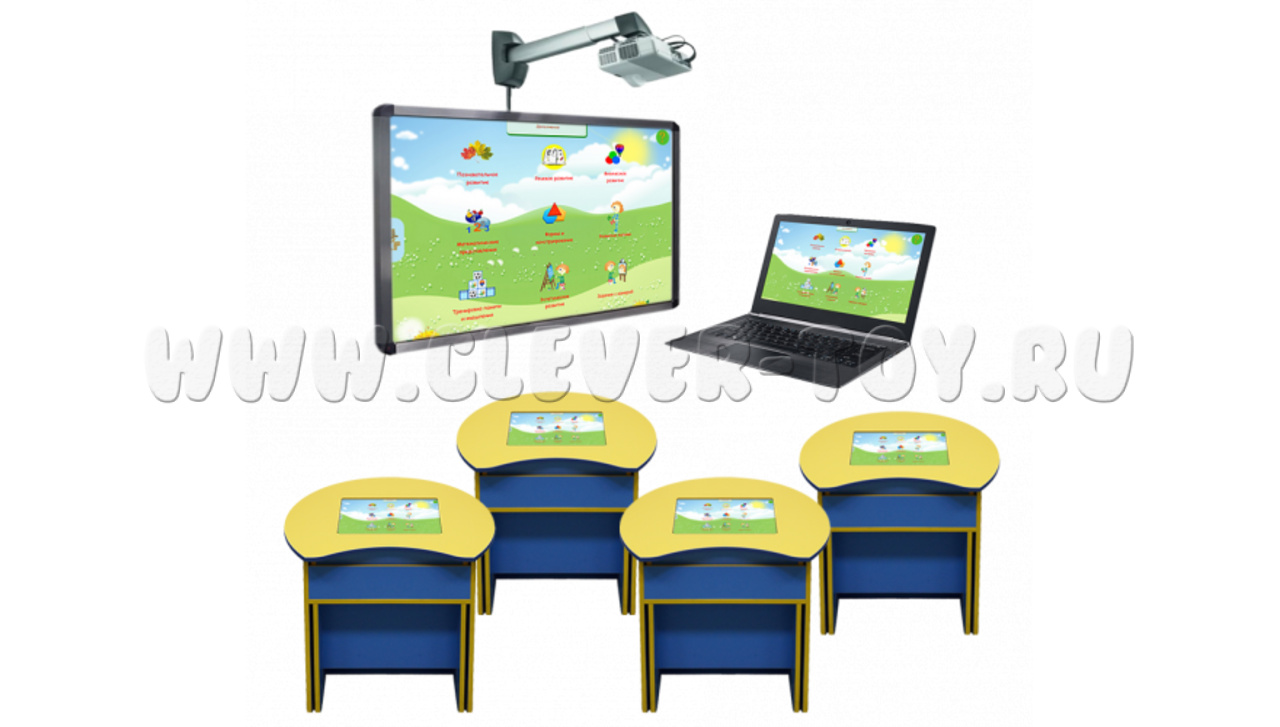 В такой интерактивный класс входит три интерактивные парты, которые подключаются через Wi-Fi к компьютеру или ноутбуку учителя, а также к проектору и к интерактивной доске. Это создает полноценную интерактивную среду, открывающую новые уникальные возможности для проведения уроков!