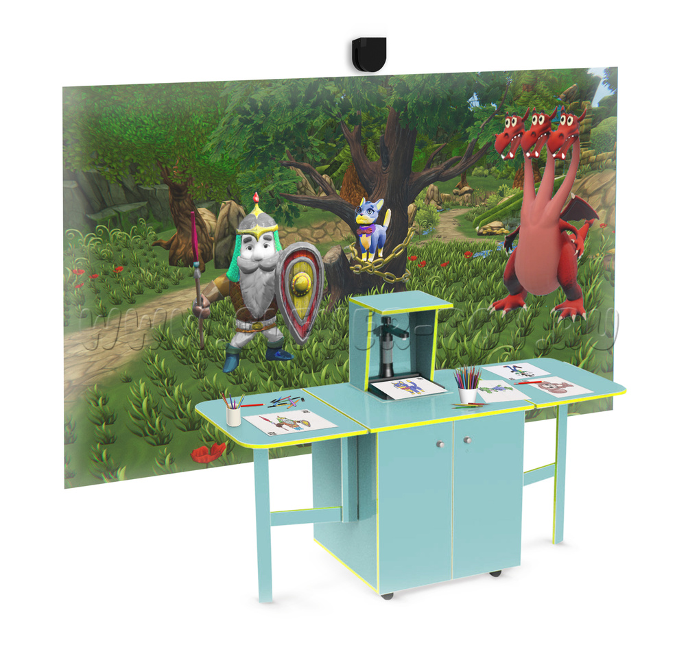 Дети разукрашивают понравившегося героя и кладут его во встроенную сканер камеру, нажимают на кнопку, и через мгновение, их герой, в точности такой, каким они его изобразили, появляется в одной из красочных тематических сцен. Сцены и раскрашенные герои живые и объемные. Герои могут улыбаться, убегать, весело шевелиться или исчезать от касаний или попаданий игровых мячиков.
