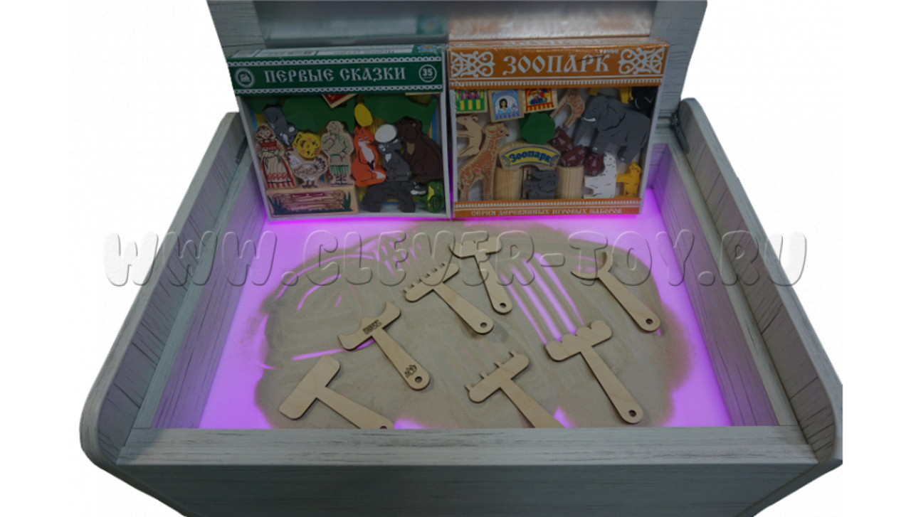 - световая песочница с возможностью изменения цвета и интенсивности подсветки,