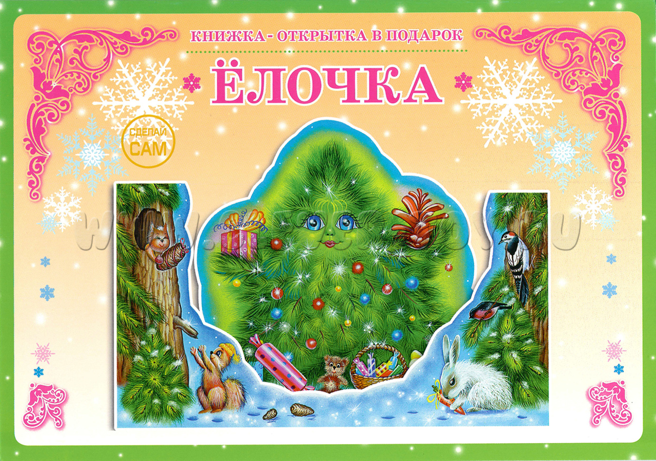 3D объёмная открытка-книжка для детского творчества "Ёлочка".