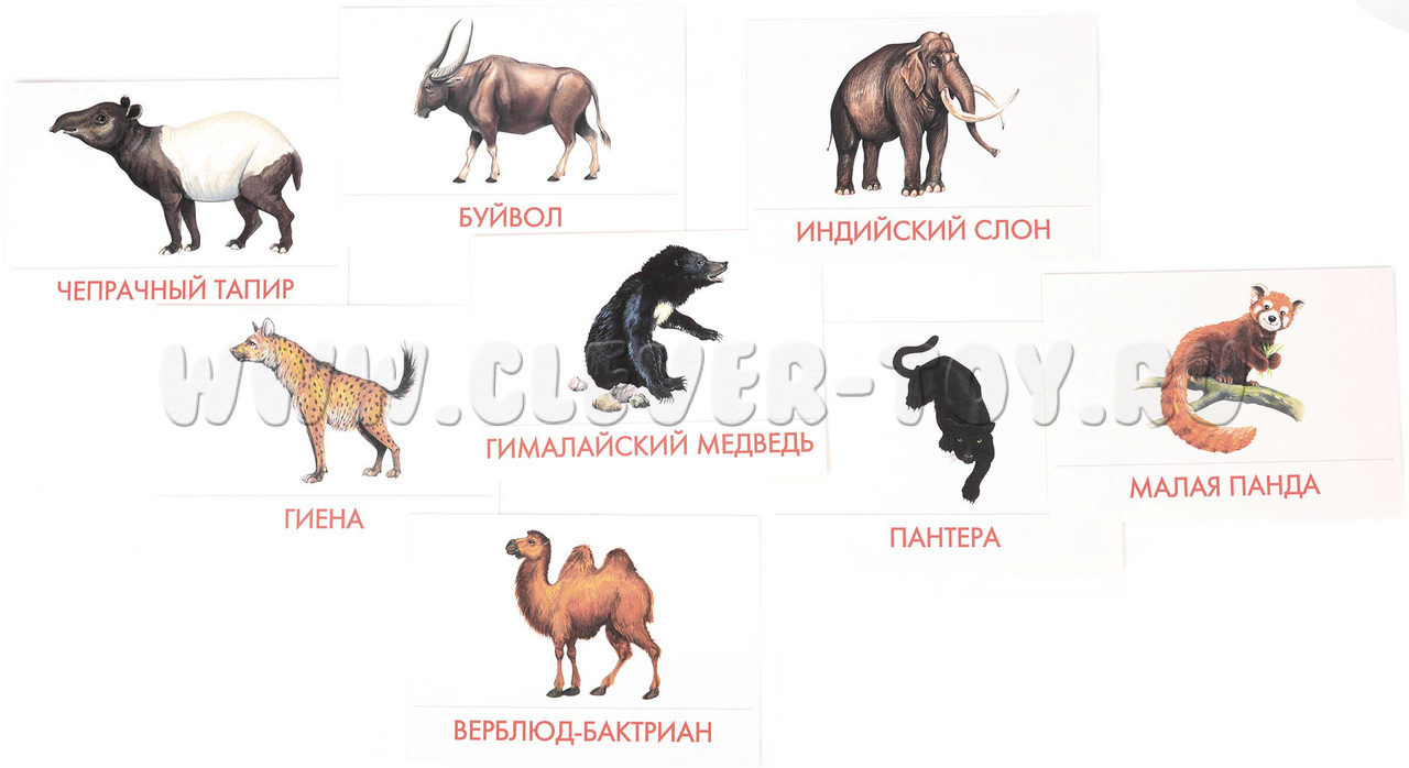В набор водит 16 карточек с изображениями животных, обитающих в Азии: