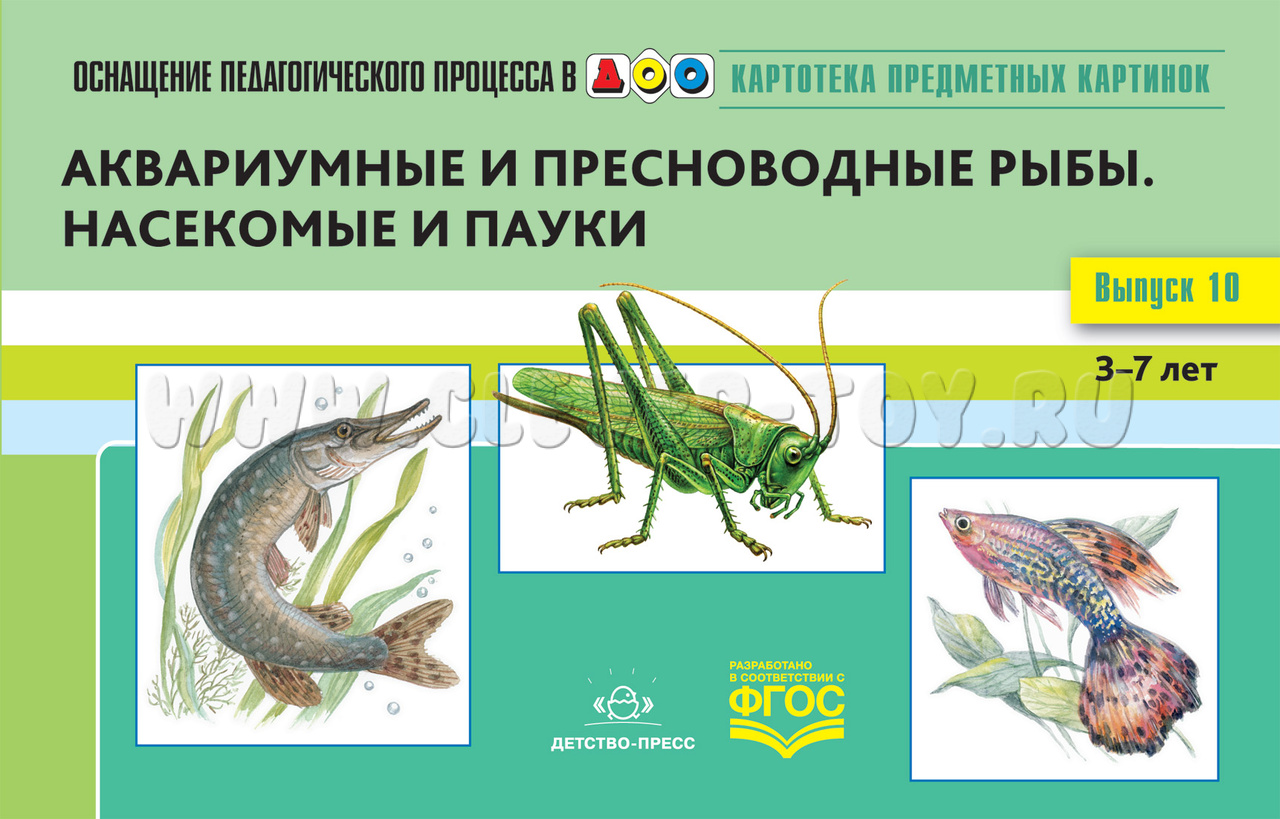 Картотека предметных картинок 10. Аквариумные и пресноводные рыбы. Насекомые и пауки. 3-7 лет. ФГОС