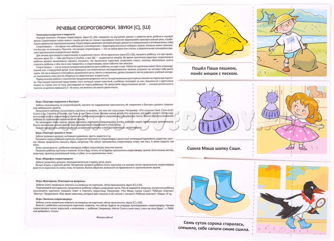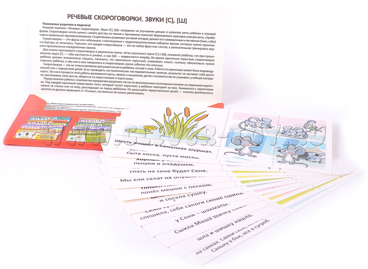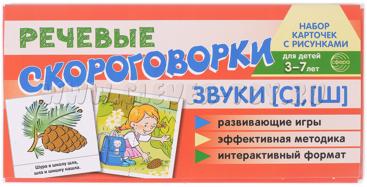 Набор карточек с рисунками. Речевые скороговорки. Звуки [С], [Ш]. Для детей 3-7 лет