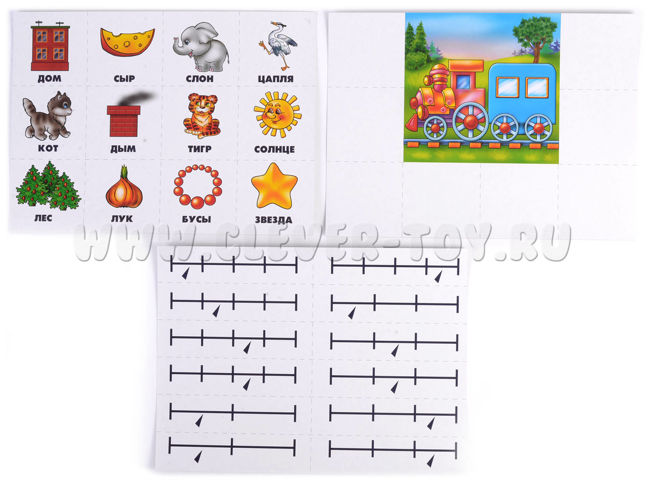 Обучающая игра для детей 5-7 лет. С помощью этой игры ребята закрепляют навыки чтения, слогового анализа слова, знакомятся с ударением в словах, развивают восприятие, призвольное внимание, память и мышление. Перед началом игры требуется разрезать карты по пунктирным линиям (получится 4 больших карты, 32 карточки с картинками и 16 со схемами).