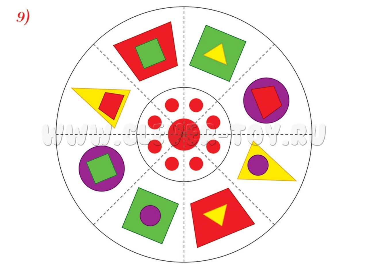 • научиться анализировать цвет и геометрическую форму, расположение (рядом-напротив).