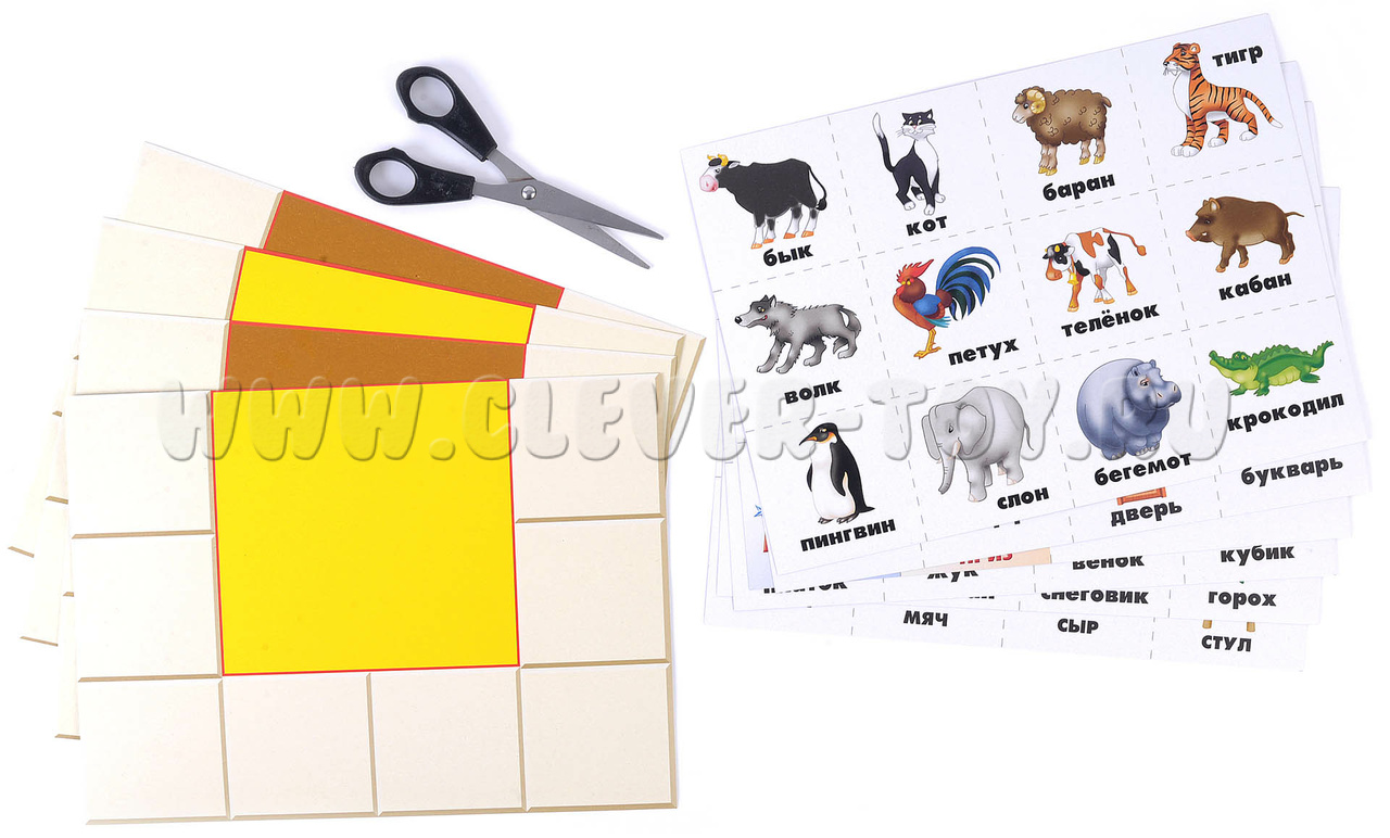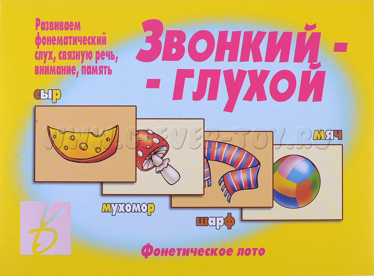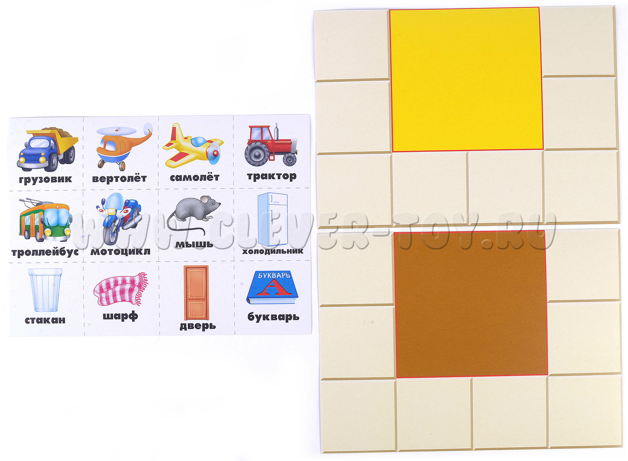 • На карты с желтым прямоугольником выкладываются картинки-слова со звонким согласным звуком, на карты с коричневым прямоугольником - с глухим.