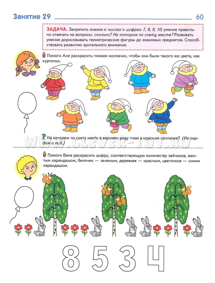 Выполнение предложенных заданий направлено на развитие математических способностей и предпосылок учебной деятельности (понимание и самостоятельное решение задач, умение провести самоконтроль и самооценку выполненной работы). Текст заданий читает взрослый. Предполагается, что одно занятие проводится раз в неделю. Желательно отвести на занятие 15-20 минут.