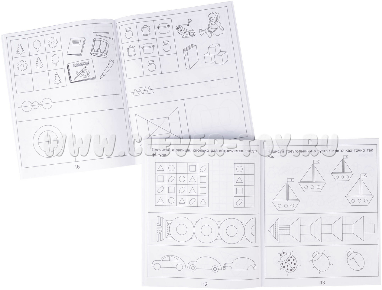 Упражнения в первой части рабочей тетради включают в себя поиск лишнего элемента, установление закономерностей, последовательностей, практику работы по образцу. Вторая – усложненная, – часть включает в себя задания на отработку навыков штриховки, устный счет и т.д. Набор тетрадей представляет собой полноценный тренажер, подразумевающий всестороннее гармоничное развитие ребенка.
