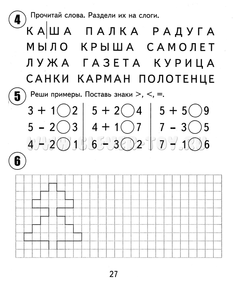 Рабочая тетрадь всесторонне подготавливает ребенка к школе. Регулярное проведение занятий дома или в детском саду позволяет ребенку уверенней себя чувствовать в 1 классе школы.