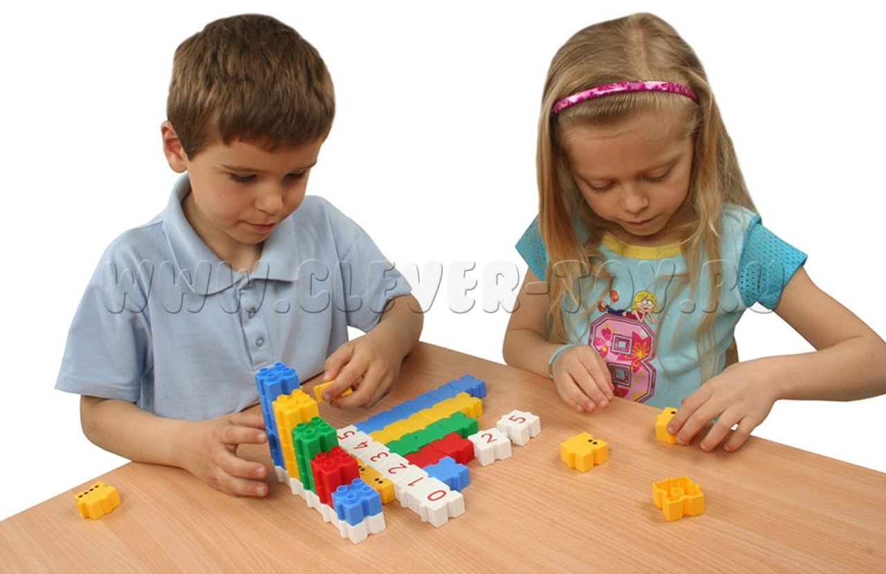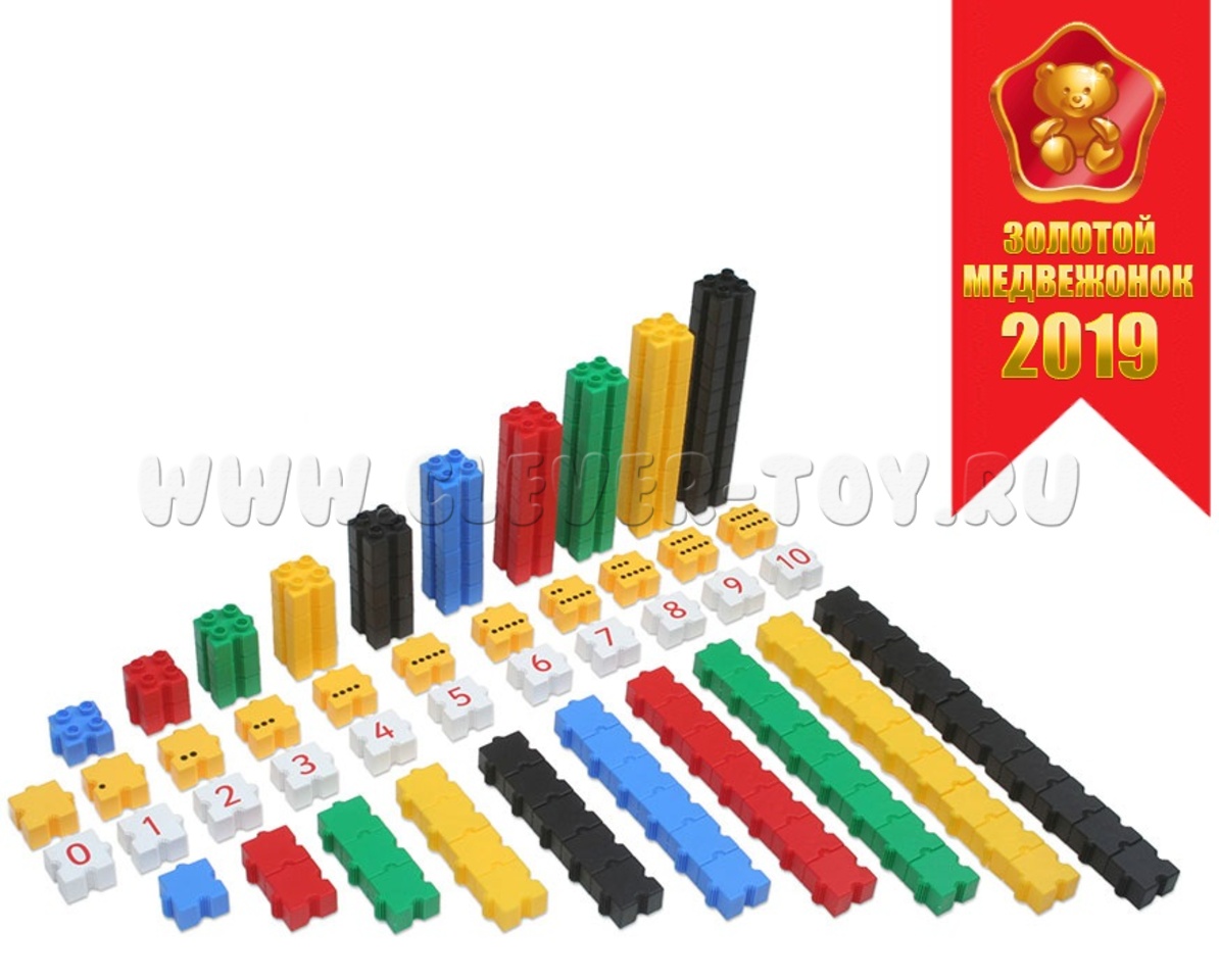На детали конструктора нанесены точки от 1 до 10, цифры от 1 до 10 и математические символы. Карточки-инструкции демонстрируют примеры счета от 1 до 10 на пальчиках, по точкам, а затем с цифрами. Методика обучения наглядно показывает различное представление чисел от 1 до 10 по высоте и длине, а также простое сложение, вычитание, деление и умножение. Конструктор может быть использован для индивидуальной и групповой работы детей в образовательной деятельности и досуговых развивающих занятиях. Знакомство с математикой у детей будет происходить легко и интересно, а знания будут легко усваиваться.
