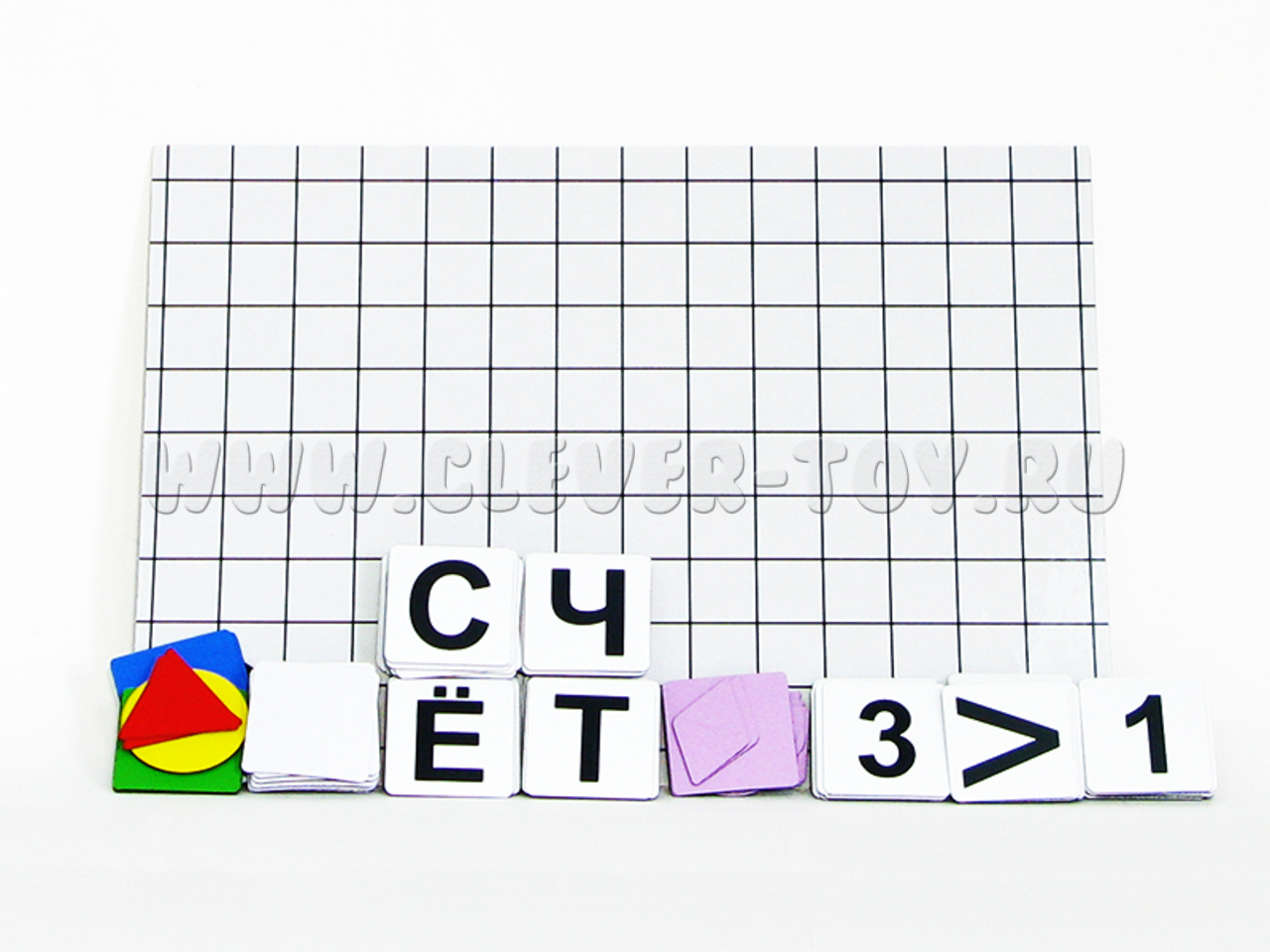 2. 70 магнитных карточек с буквами, которых хватит для составления любого слова и чей размер подходит под клетку на доске.
