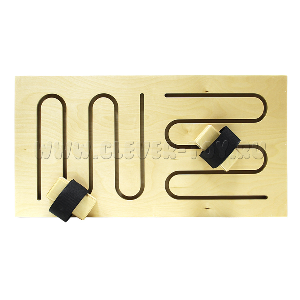 Лабиринт предназначен для развития двигательных навыков. Панель может устанавливаться на столе или крепиться к стене на удобной высоте. Крепления одеваются на руки или на ноги.