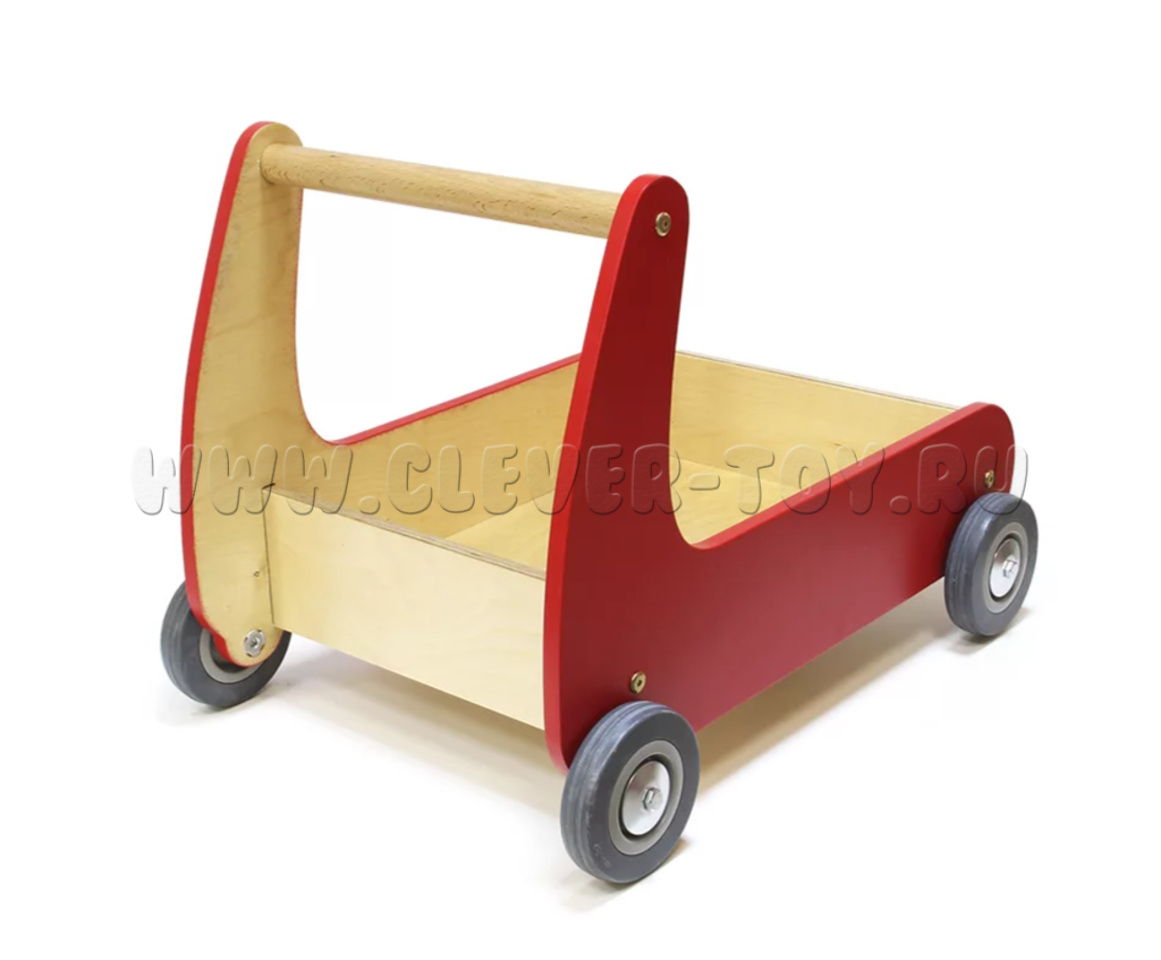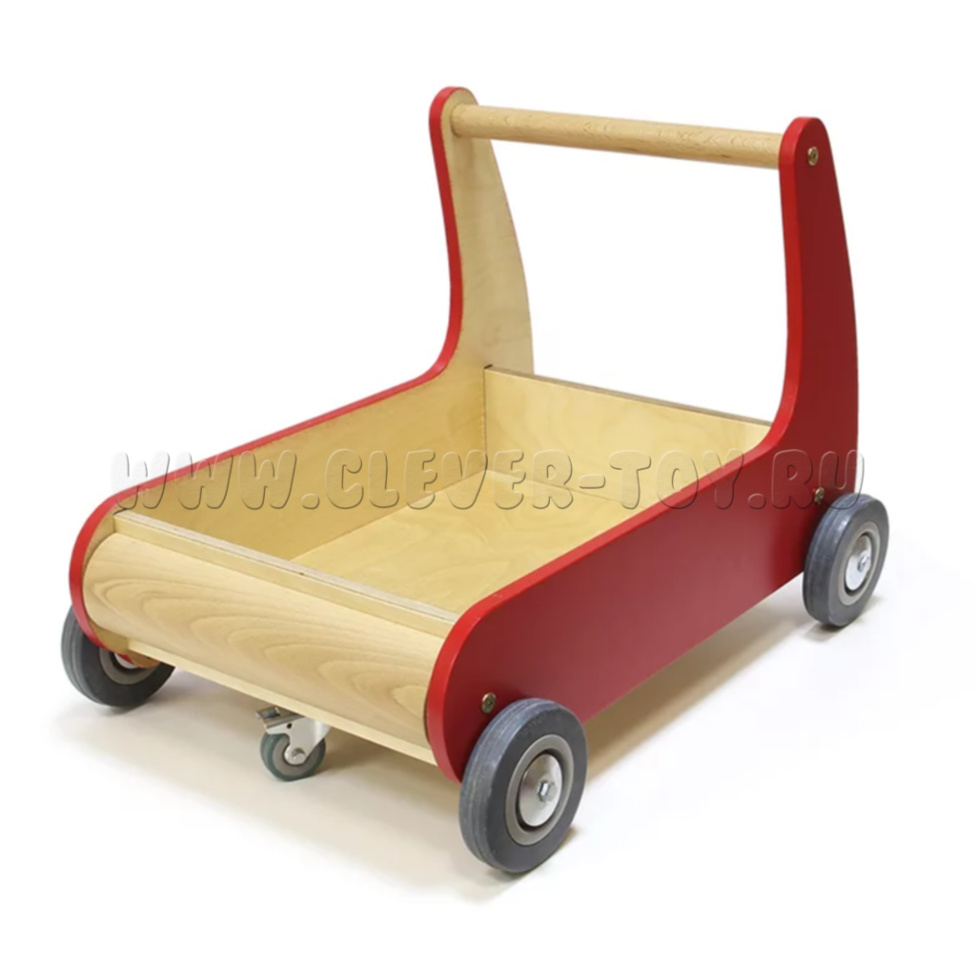 Тележка, которая является не просто ходунками, представляет собой деревянную конструкцию, помогающую сделать первые шаги.