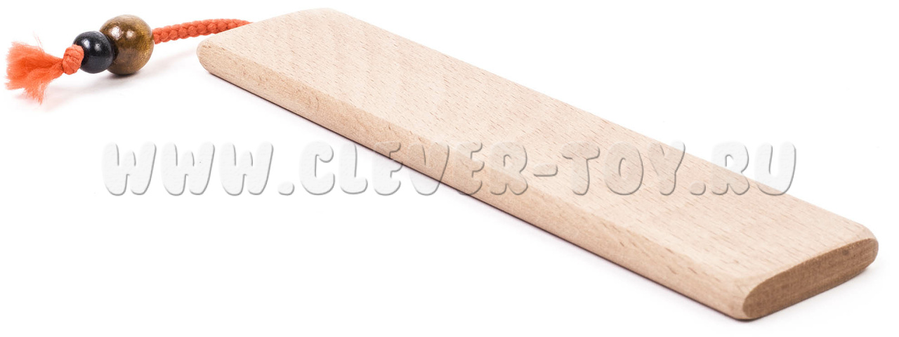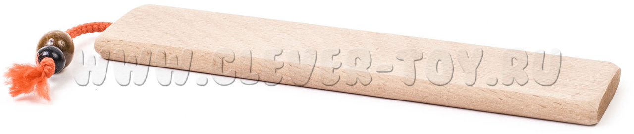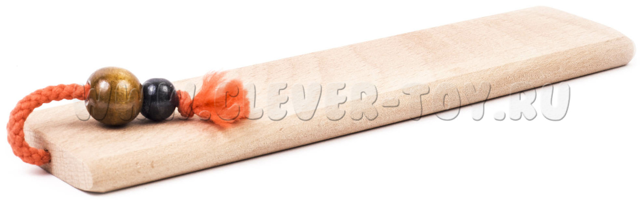 Колотушка с росписью представляет собой деревянный брус с размерами: 140 мм х 30 мм х 5 мм. В верхней части бруса посредством капронового шнура крепится бусинка диаметром 16 мм. Материал: бук, береза.