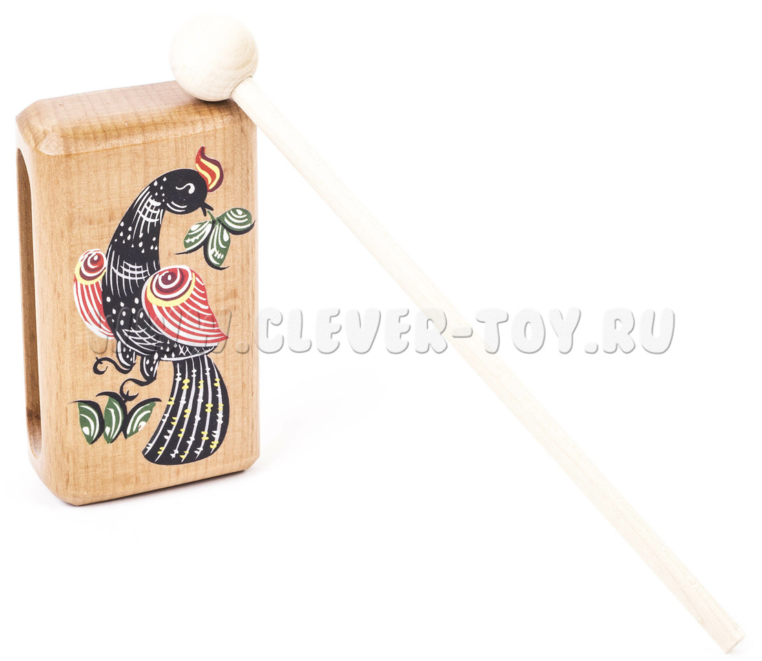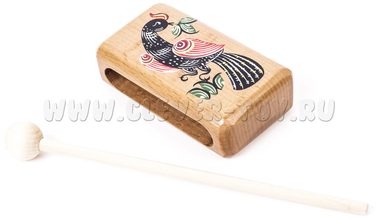 Представляет собой деревянный брус 30х50х90 мм. Музыкальный инструмент комплектуется ударной палочкой. Материал: бук.