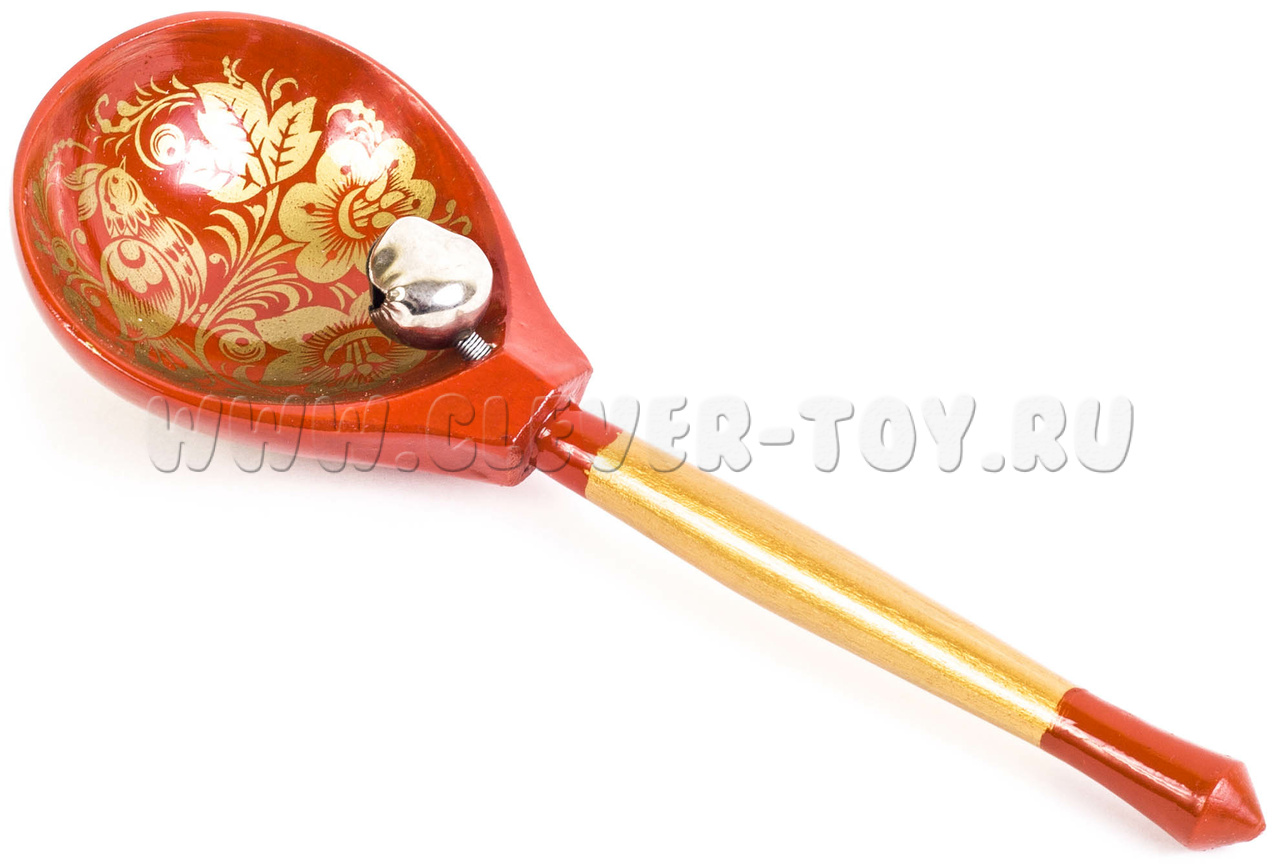 Размеры: 19 х 6,5 см, диаметр черпака 65 мм, длина черенка 115 мм. Ложка выполнена на станке. Черенок и черпак соединяются клеем. С внутренней стороны черпака крепится бубенчик. Материал: береза.