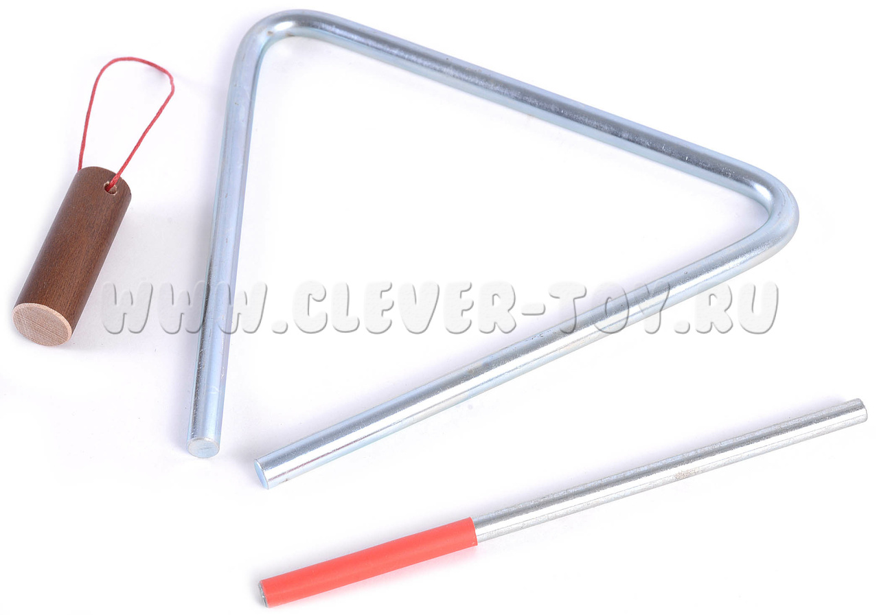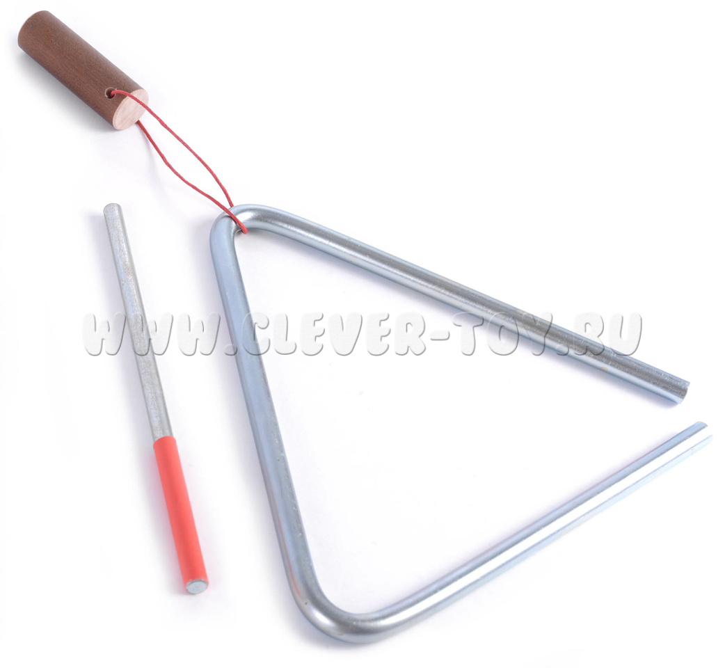 Треугольник выполнен из стали диаметром 8мм, длина стороны - 16см. Гальваническое покрытие не ухудшает качество звука и не разрушается при механическом воздействии. Ударная палочка из нержавеющей стали.