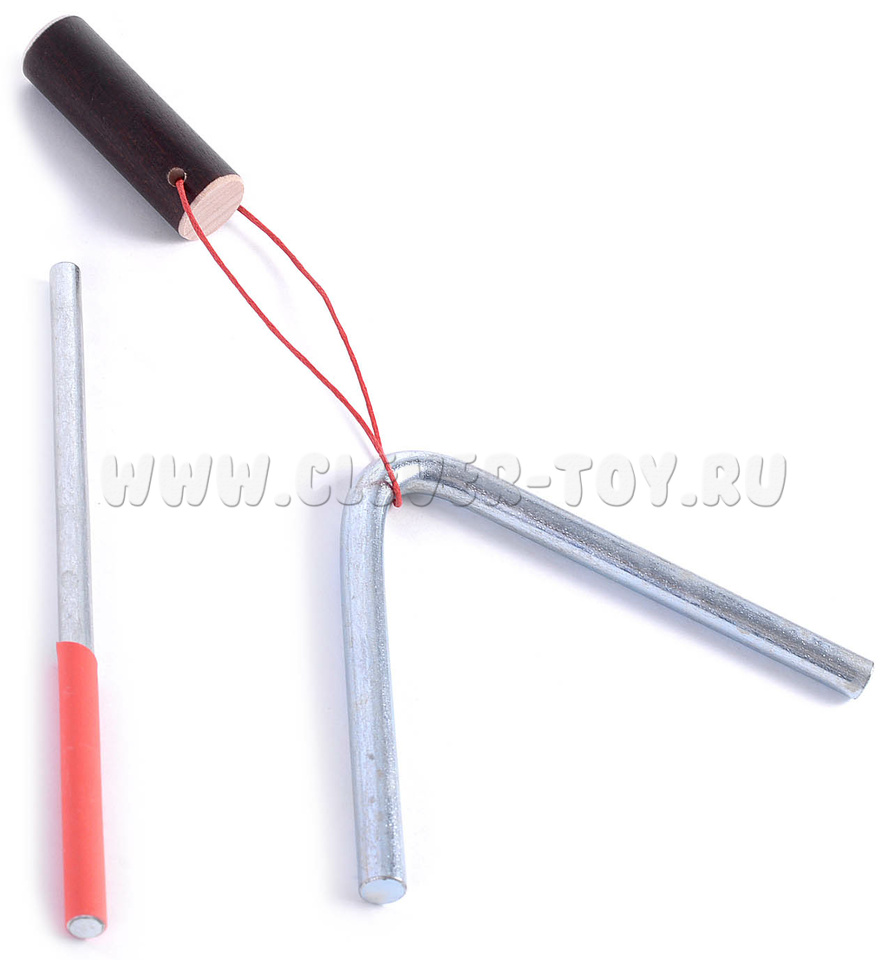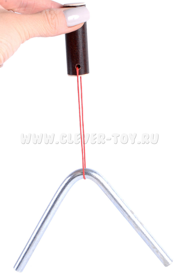 Угольник выполнен из стали диаметром 8мм, длина стороны - 10см. Гальваническое покрытие не ухудшает качество звука и не разрушается при механическом воздействии. Ударная палочка из нержавеющей стали.