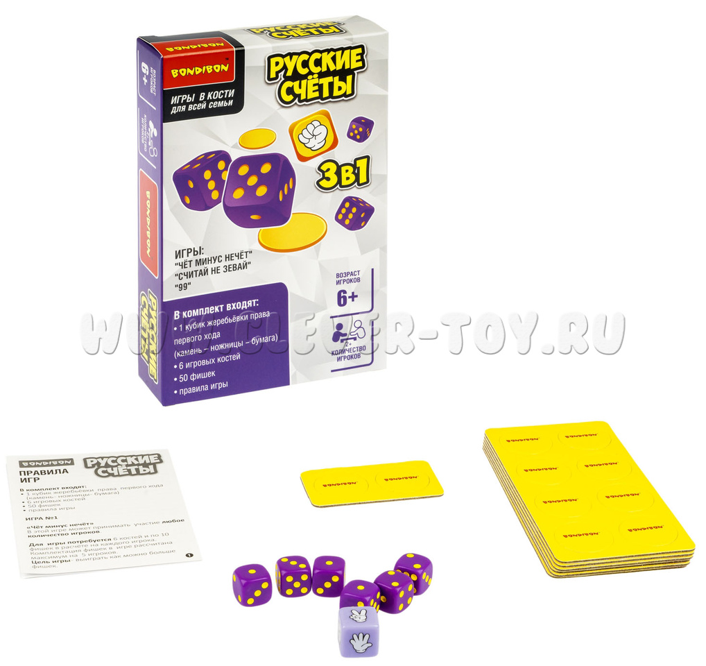 Настольная игра в кости "Русские счеты" 3в1 с фишками.