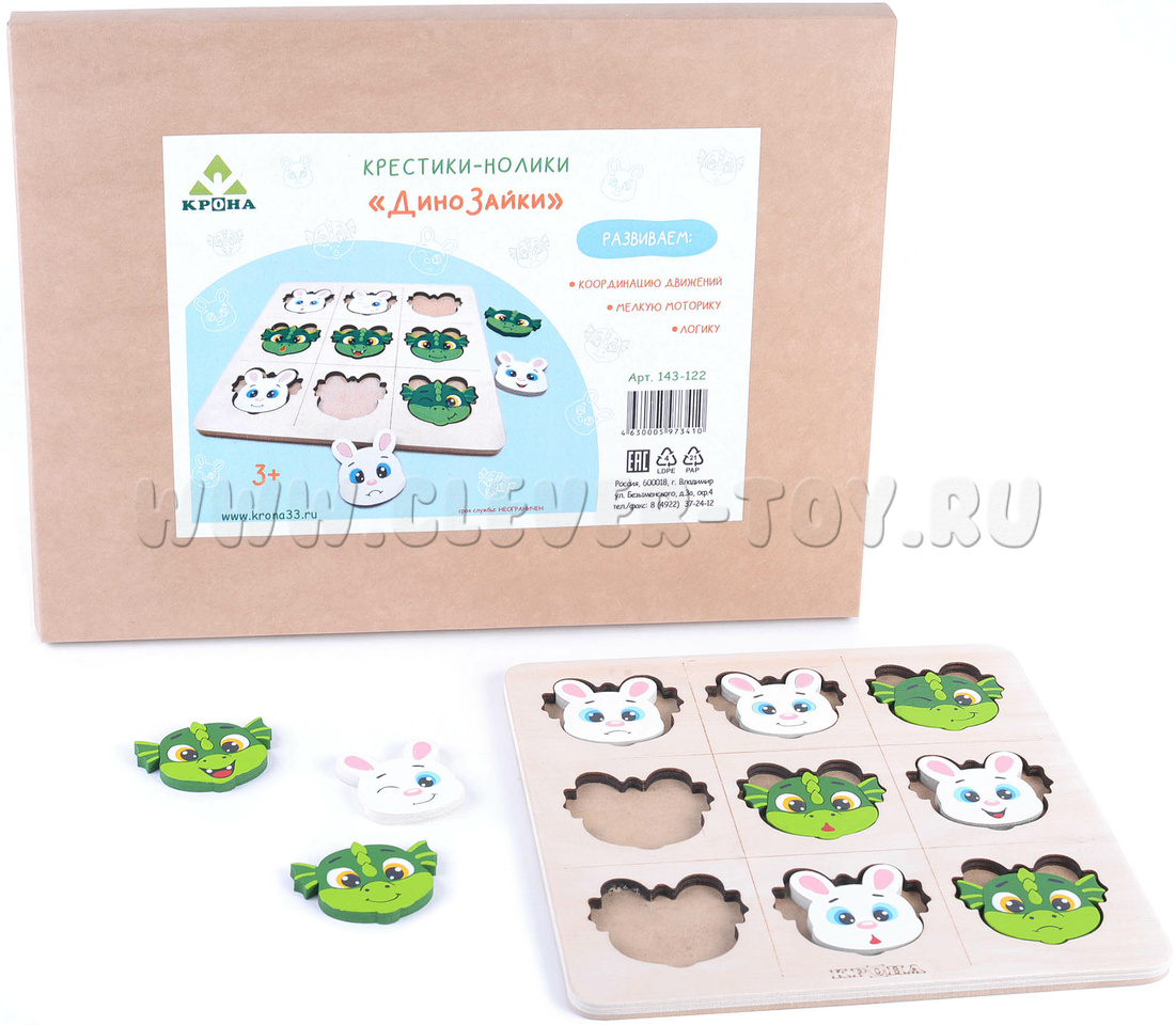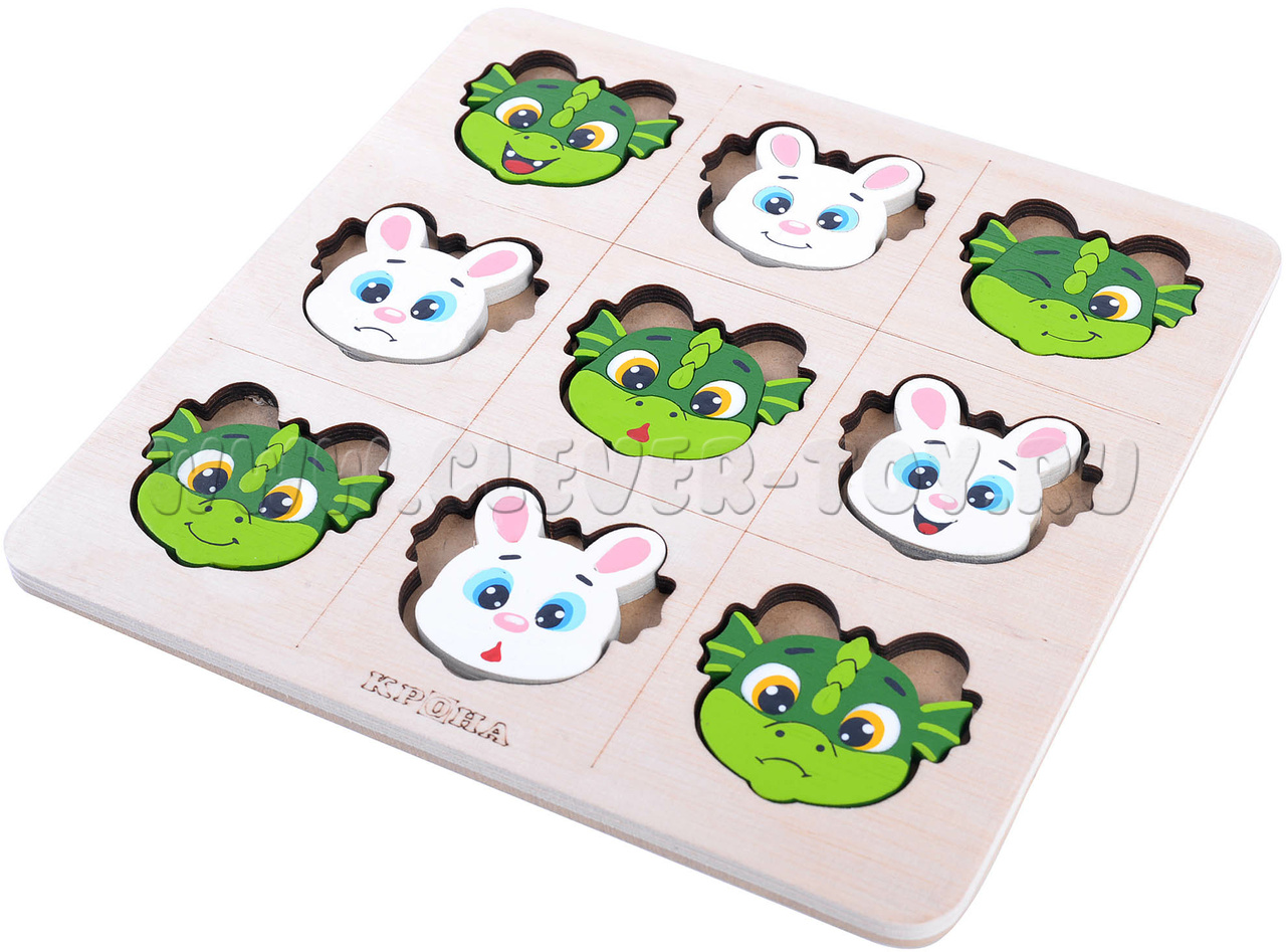 Игра крестики-нолики "ДиноЗайки" 10 деталей+рамка