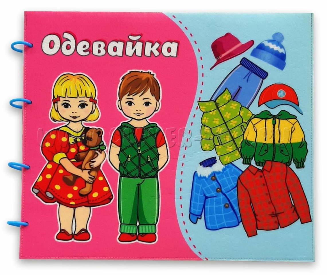 Папка "Одевай-ка" - это многофункциональная игровая книга, состоящая из четырёх страниц с изображениями двух детских комнат и площадки для прогулок в разные времена года.