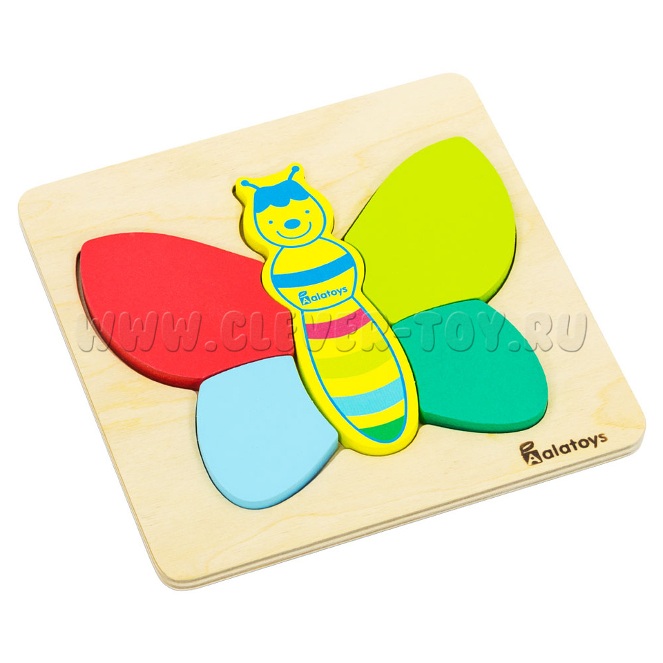 Пазл «Бабочка» представляет собой деревянную основу с углублениями для размещения деталей уточки. Только правильно подобрав детали по форме и размеру, у ребёнка получится сложить правильные пазлы. Не забывайте хвалить малыша при каждом верном действии.