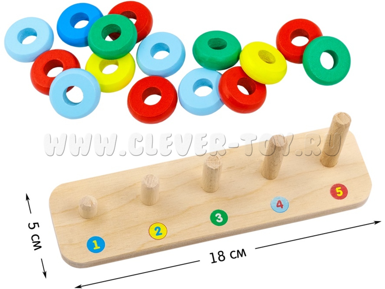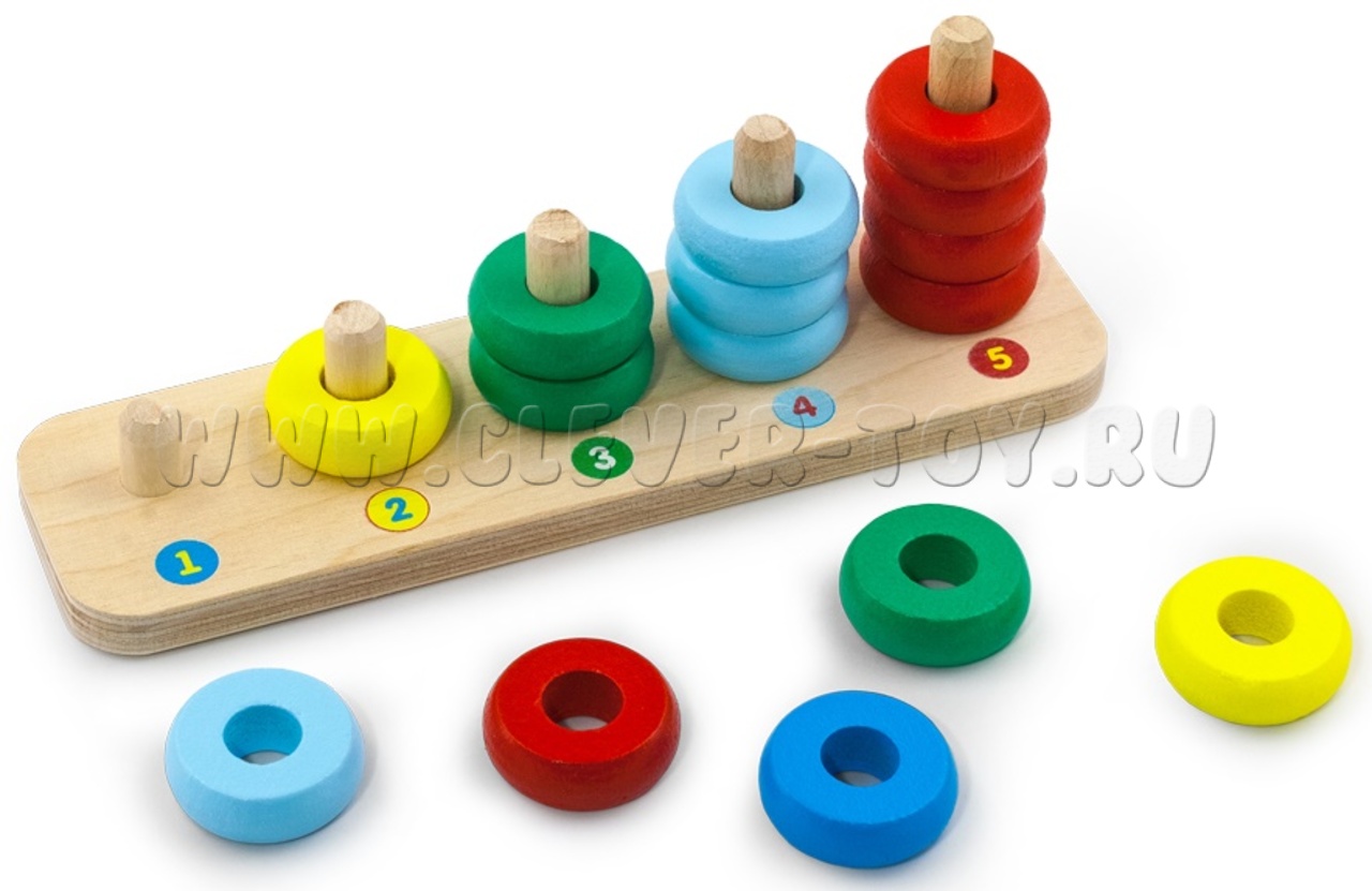Пирамидка деревянная "Счеты" (15 колец, основание)