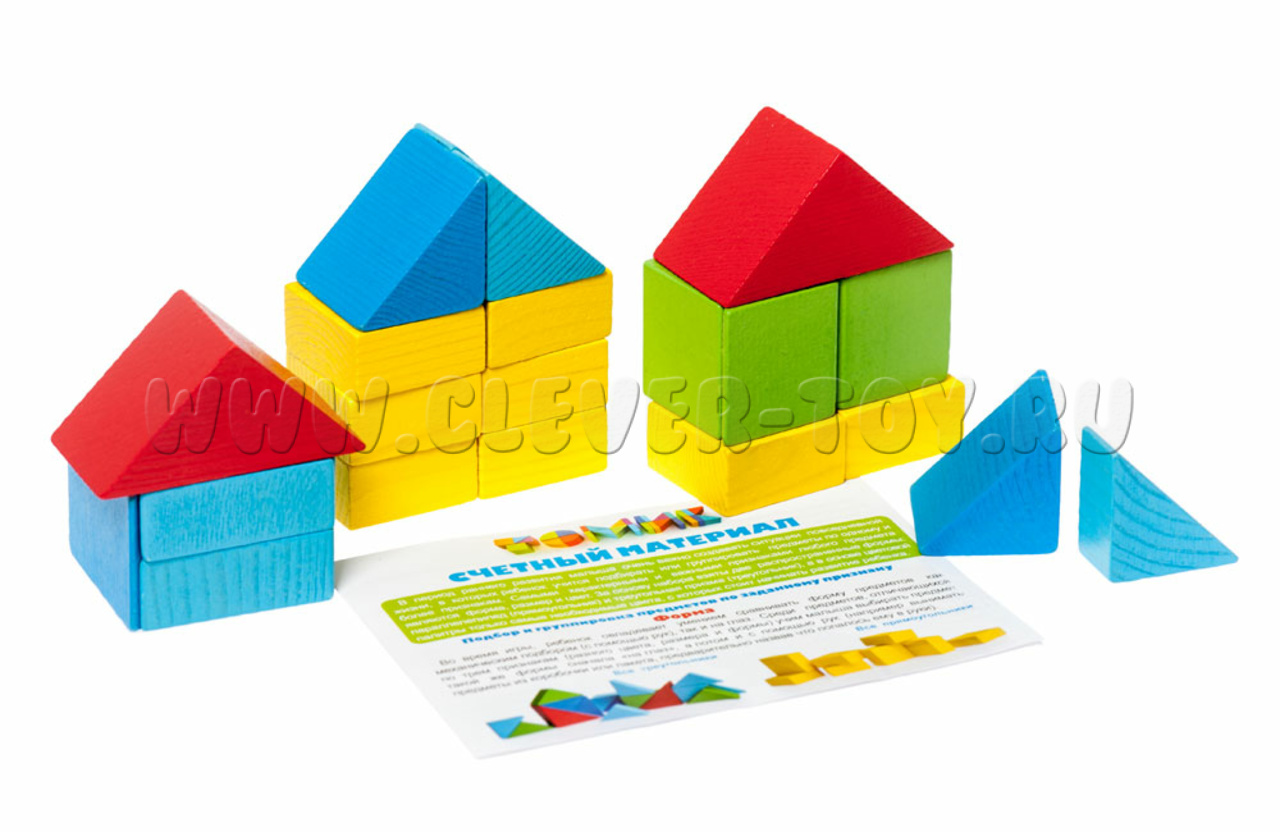 Развивает фантазию, знакомит ребенка с цветами, геометрическими формами, позволяет построить необычные цветные композиции, домики и башни.