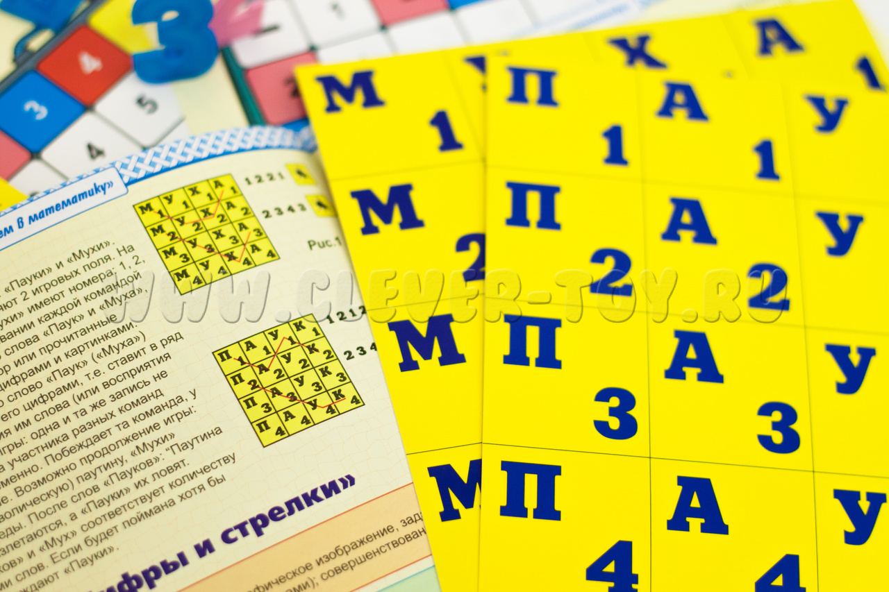 - игра «Паук и Муха» - научит ребёнка зрительно воспринимать слово как узор из букв, кодировать буквы цифрами и записывать ими слова;