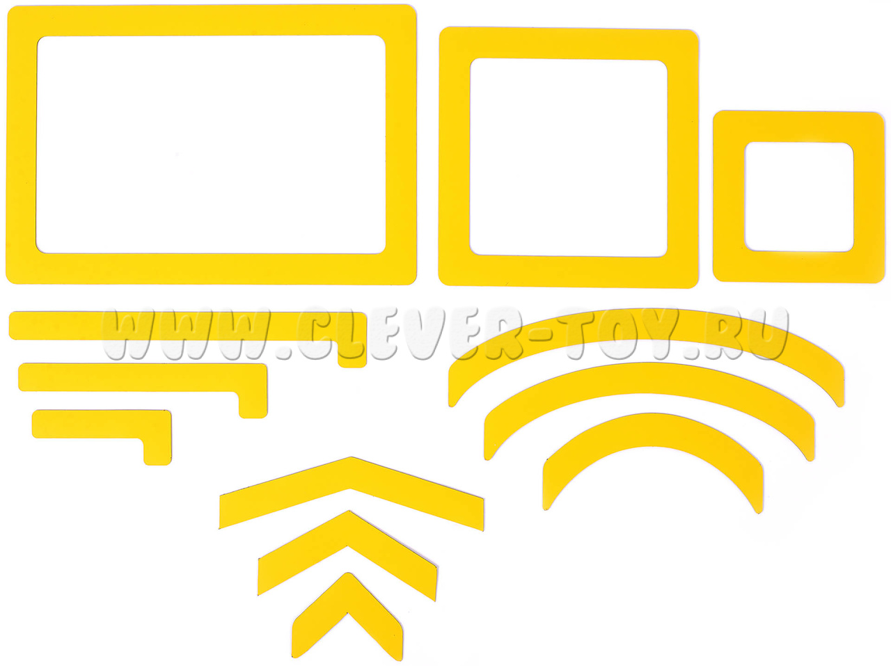 Размер элементов: от 5 до 17 см. В наборе: 12 деталей трёх размеров (приставка, корень, суффикс, окончание).