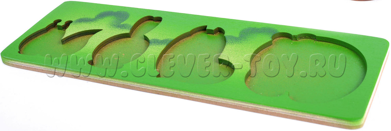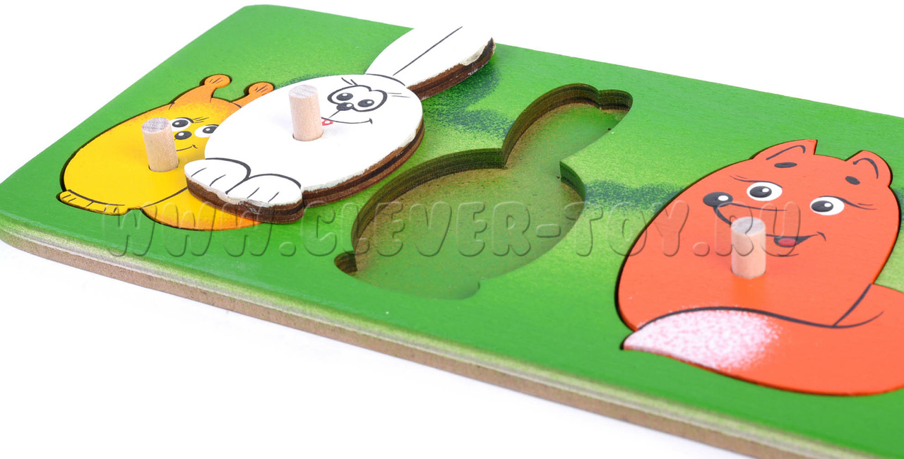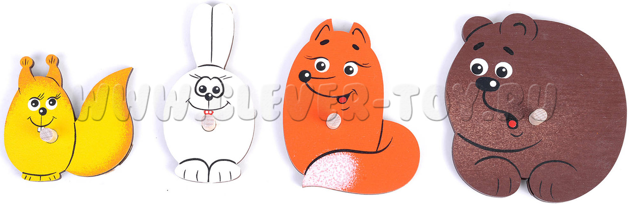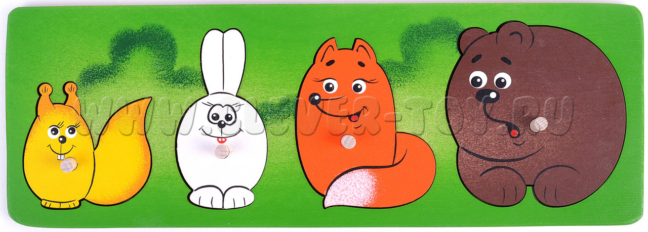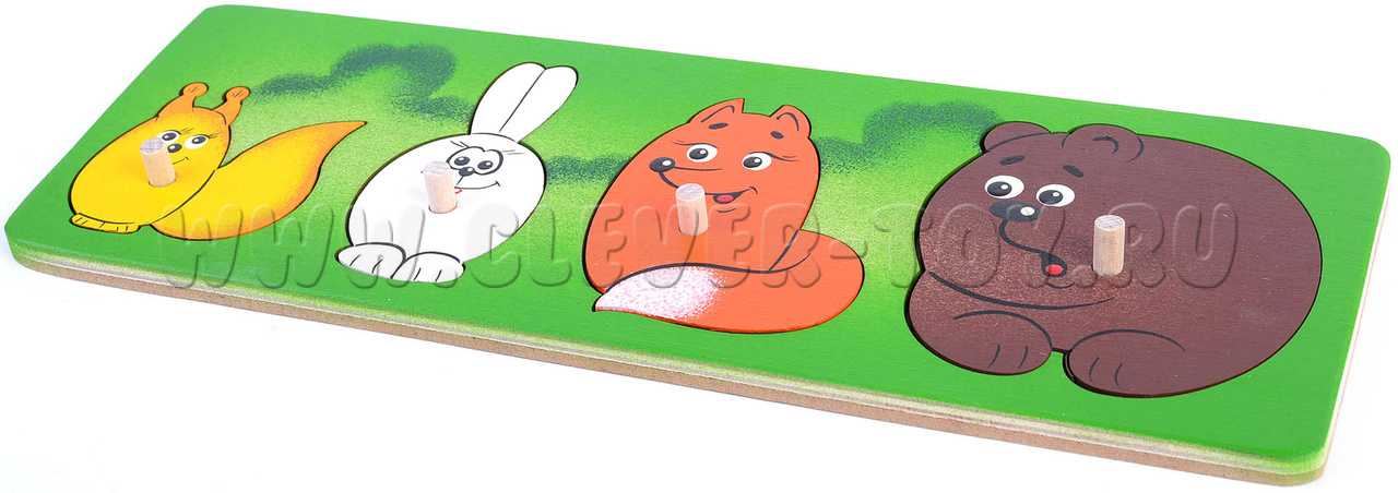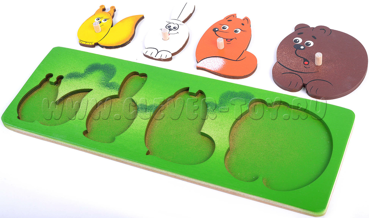Каждая фигурка животного (белка, заяц, лиса, медведь) сделана с удобным держателем, чтобы можно было легко достать и вставить детальку. Также детали рамки можно использовать как трафареты или как персонажей для придумывания историй, что способствует развитию речи и словарного запаса.
