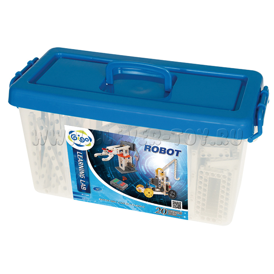 Все детали упакованы в пластиковый контейнер с фиксируемой крышкой и ручкой - удобно хранить и переносить.