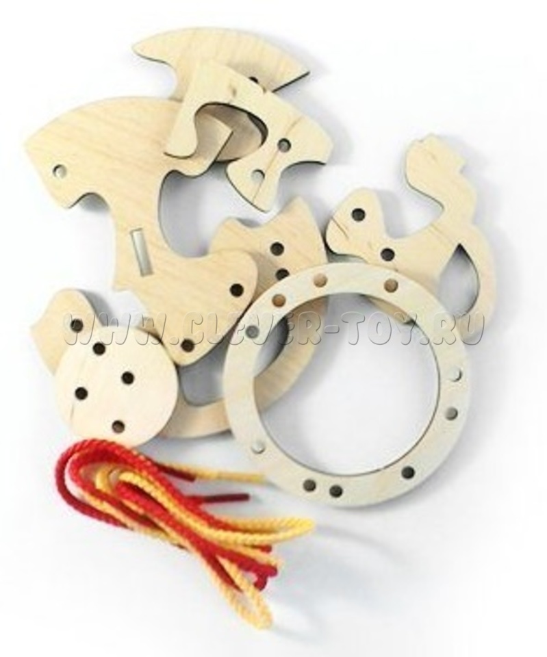 Для начала можно предложить ребенку просто продевать шнурки в отверстия, это тренирует мелкую моторику, затем по играйте с ребенком в игру. Предположим, что у вас разбилась чашка, предложите ее склеить( зашнуровать) - это задание будет способствовать развитию мышления и усидчивости.